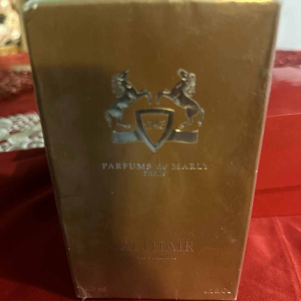 The Parfums De Marley Paris Altair Eau De Parfum is a luxurious fragrance with a volume of 4.2 fl oz, presented in a new box for fast shipping. This Eau de Parfum comes in a regular size bottle and features a spray formulation, making it easy to apply. The fragrance combines notes of Musk, Elemi, Guaiac Wood, Praline, Candied Almond, Cardamom, Orange Blossom, Bourbon Vanilla, Tonka, Ambroxan, Cinnamon, and Bergamot, providing a long-lasting and concentrated scent experience. Perfect for those who appreciate high-quality, all-natural ingredients in their perfumes.