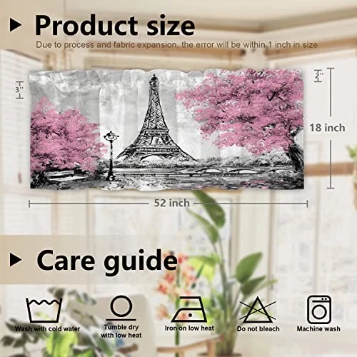 Return Policy Fast Delivery Trusted seller Paris City Landscape Kitchen Valances Half Window Curtain, Oil Painting Paris European City Landscape France Eiffel Blackout Decoration Window Valances Curtains Drapes for Kitchen Bedroom Product Description Dimensions: Standard size 52x18 inch,set of 1 including 2 inch header and 3 inch rod pocket.After the curtain is straightened, it is suitable for windows with a length of 40-44 inches. If you want to make the curtain appear wrinkled, it is recommended to use the curtain for windows with a length of 26-35 inches. Material: The valance is made of 2 layers of high quality polyester fabric with a black shading layer in the middle. High-definition laser-printing pattern is lively, vivid.Due to the black shading layer in the middle of the curtain, the overall tone is slightly gray. Production Characteristics: Different pattern is perfect for protecting privacy and reducing light.Cozy and flowing, just enough to soften a stark window frame without blocking natural light, Colorful valance is also a beautiful decoration and brings fun to your house. Care Guide:Easy to clean. Machine washable,aslo wash your hands gently with cold water and dry only in the shade. Wash with cold water and gently circulate. Dry at low temperature and do not bleach. You can easily iron at low temperatures. Special Reminder: T will be creases after the curtain is packaged, and the texture of the crease will become larger when it is unfolded, but it can be restored after it is flat. The surface of the curtain is smooth, and contact with sharp objects will scratch the fabric. Shipping Returns Payment Shipping Shipping is FREE to all addresses other than APO/PO boxes in the lower 48 states. All our stock ships from US-based warehouses. Shipped via USPS or UPS (depending on location and package weight) Unless stated otherwise, all orders will ship within 24-72 hours of your payment being processed. Check our feedback to see the great reviews of FAST shipping we offer. Returns Seller does not accept returns Payment We currently accept payment via eBay managed payments only. Once payment is cleared, we will dispatch your shipment within 1-3 business days. Please refer to the "Shipping" tab for more information regarding shipping speed to your destination.