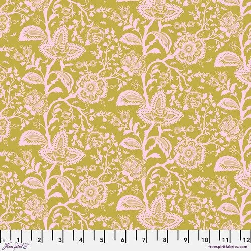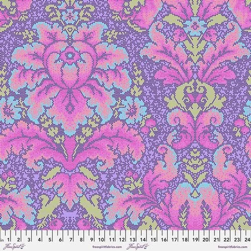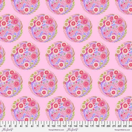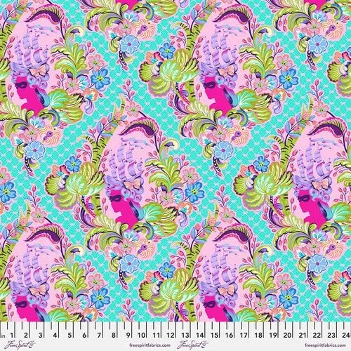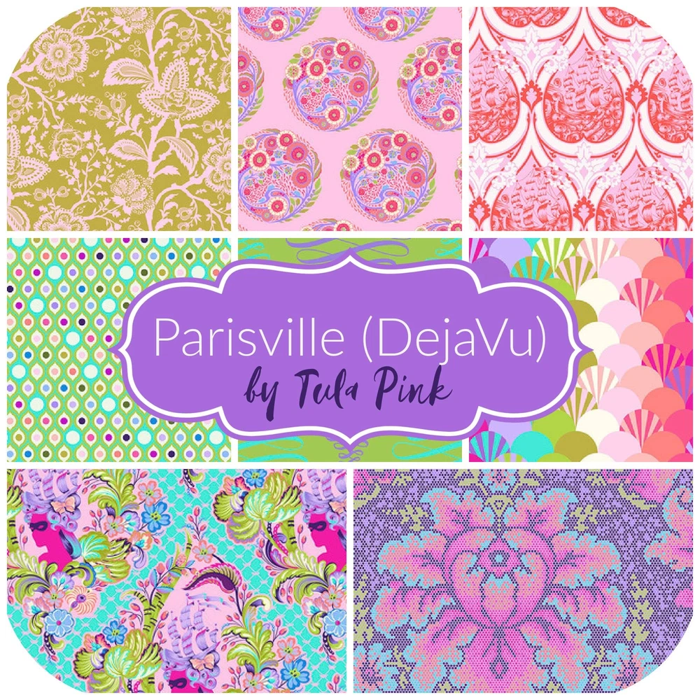 Fabric bundle (Fat Stack) of 6 18-inch by 22-inch fat quarters and 2 1-yard cuts from the Deja Vu Parisville collection by designer Tula Pink for . Parisville was my first collection for Fabrics which was originally released in 2010. This collection marked the start of a new partnership that has gone on to last more than a decade! The collectability of our print fabrics has continued to rise over the years. My goal is to make some of these older, hard-to-get, prints more accessible to new makers while preserving the integrity of the original collection. I have learned a lot about color and fabric design since I designed my fabric collection in 2006 and I am bringing all of that knowledge and experimentation to the new “Deja vu” collections that I hope to continue releasing once a year. The first installment of the “Deja vu” series is a favorite of mine. Parisville marked a directional change for me as an artist into bigger, more colorful designs that had a larger story telling quality. I have breathed new life into Parisville using a dreamy color palette of bright pastels and rich citrus colors. The design of Parisville was based on the story of Marie Antoinette, in all of its unnecessary decadence, as seen through the lens of what a young girl might think is “fancy”. It was only natural to pull the new color palette from a buffet of ice cream colors and dessert treats. This collection is like frosting, it's sweet, decadent and entirely indulgent. I have left the designs largely intact in an effort to preserve the original qualities of the prints that made them popular in recent years. I made one notable change to the main print. The Cameo print had 3 different hair styles when it was first released and the new print focuses on only the most coveted and classic sailing ship hairstyle that best represents the narrative. Deja Vu Parisville collection from Designed by Tula Pink Fat Stack includes 6 18-inch by 22-inch fat quarters and 2 1-yard cuts 100% Cotton; premium quilt shop quality fabric