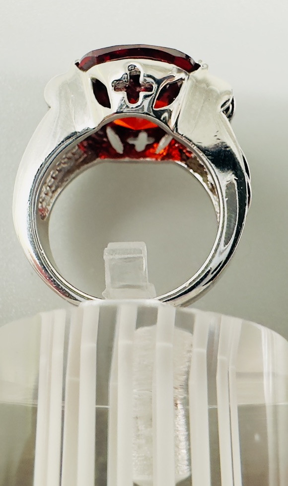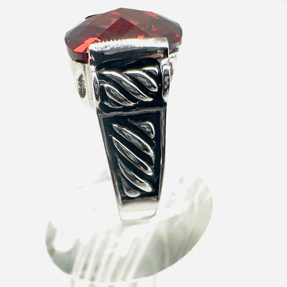Main Stone Color:RedTheme:BeautySecondary Stone:Cubic ZirconiaShape:SquareMain Stone:Cubic ZirconiaType:RingMain Stone Creation:Lab-CreatedRing Size:5Color:SilverSigned:YesBrand:Park LaneMetal:Rhodium Plated