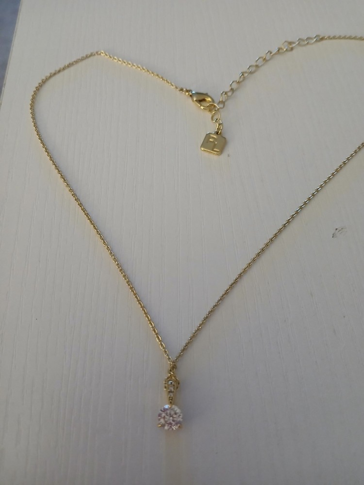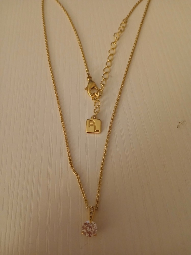 New without box. beautiful piece! very sparkly! The Park Lane Gold Tone Round Faux Diamond Solitaire Necklace is a stunning piece of fashion jewelry that exudes elegance and style. The necklace features a simulated white/colorless round rhinestone set in a classic solitaire setting, making it perfect for various occasions such as engagements, weddings, anniversaries, and birthdays. The 18-inch chain necklace also makes a stylish statement piece for those special moments. Signed by the brand Park Lane, this necklace is a timeless and eye-catching accessory for any outfit.
