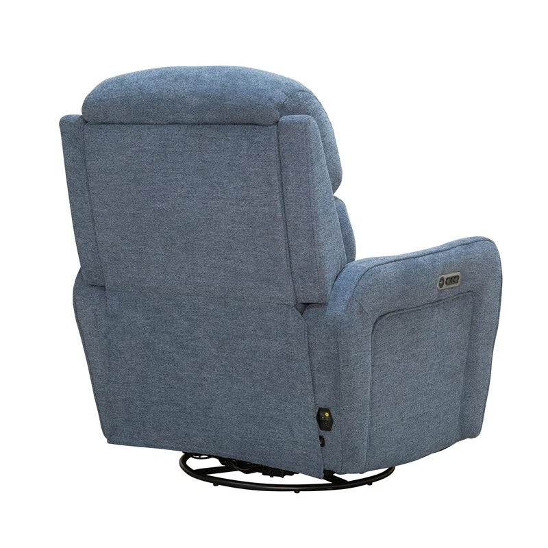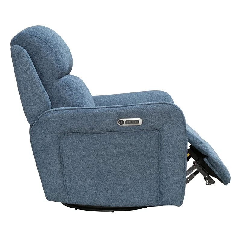 Recline in comfort and style with this welcoming cordless Power Swivel Glider Recliner. This swivel glider recliner includes our FreeMotion 2500mah battery so you can recline without cords. Taking comfort to the next level, it offers smooth reclining functionality at just the touch of a button. Whether you add it to your main seating area or feature its space-saving design in another room, you're sure to enjoy its beauty. Features: P2: Power seat and headrest provide stress-relieving comfort Powered by Freemotion cordless battery offering up to 450 single motor cycles Built-in FreeMotion® cordless battery pack allows it to be operated cord-free and placed anywhere in the room without proximity to and outlet and offers up to 450 cycles of the motor on a charge Glider function creates soothing rocking motion. A 240-degree swivel feature makes it easy to see and hear everything. High-tech motor delivers ultra-smooth, power reclining at the touch of a button. 100% Luxury foam cushion Supportive 1.8 to 2.2 density foam Fully padded foam-wrapped hardwood frame Specifications: Color/Finish: Upgrade Midnight Blue Material: 94% Polyester, 6% Nylon Product Dimensions: 36.5"W x 40"D x 44"H Product Width: 36.5" Product Height: 44" Product Weight: 135.3lbs. Weight Capacity: 360lbs. Back Dimensions: 28.5"W x 27"H Seat Dimensions: 24"W x 22"D x 20"H Adjustability: Power Reclining Assembly Required: Yes Commercial/Residential: Residential