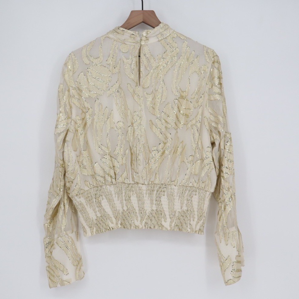 The Parker The Piper Top in Women's XL is a stylish and versatile blouse featuring a geometric pattern in gold and ivory colors. It has a mock neck with a keyhole cutout and smocked hem accents, adding a touch of detail to the design. This casual top is perfect for the spring and summer seasons, with a regular fit and easy-care machine washable fabric. The long sleeves and button closure make it suitable for everyday wear, while the modern outdoor theme adds a trendy flair to the overall look. Made by the brand Parker, this blouse is a chic addition to any woman's wardrobe. Measurements: * Chest: 23 in * Length: 22 in Department: Womens Style: Basic Type: Top Pattern: Floral Performance/Activity: Casual, Party/Cocktail Features: Comfort, Easy Care Occasion: Party/Cocktail Length: 22 in Closure: Pullover Chest: 23 in Keywords: Parker, Casual, Comfortable, Pullover, Party/Cocktail, Everyday Wear, Easy Care, Long Sleeve. All orders are shipped the same business day or the next business day. Thank you for supporting my small business.