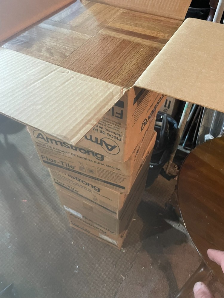 Oak Parquet Flooring with Honey colored urethane finish. New in box.