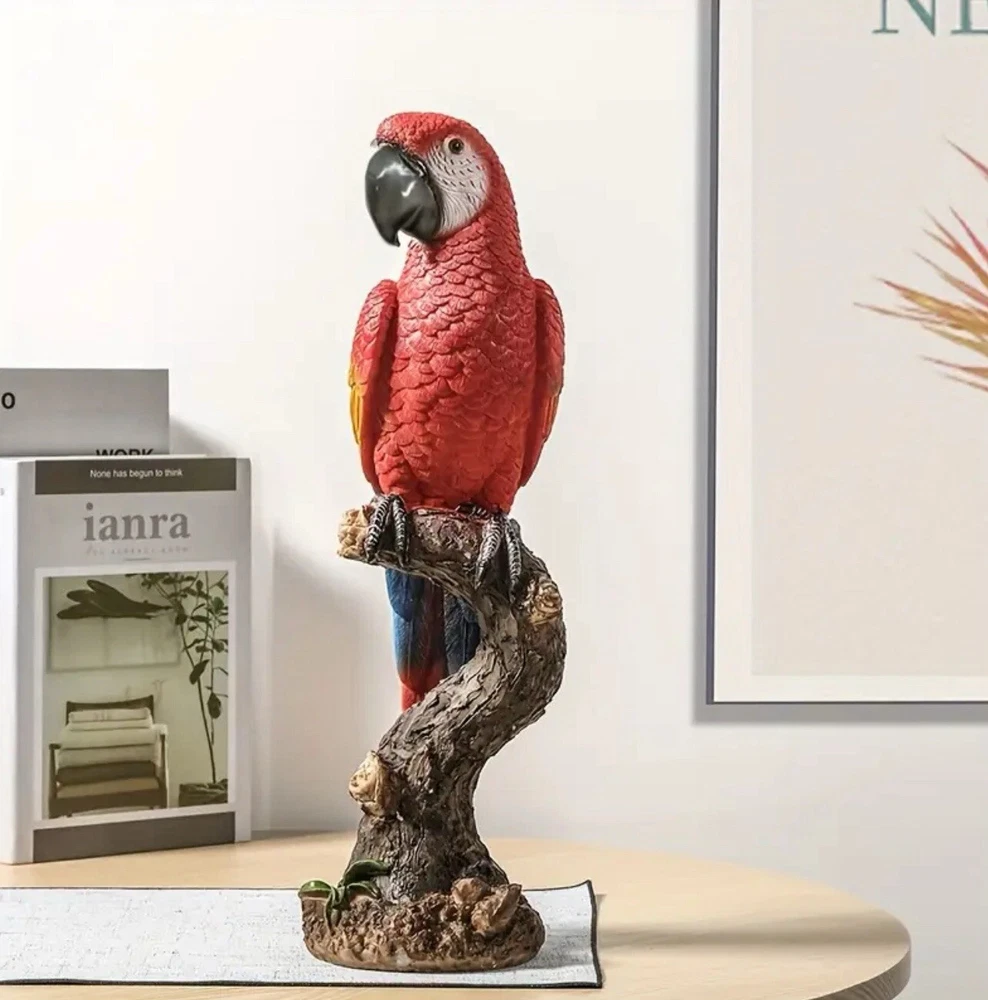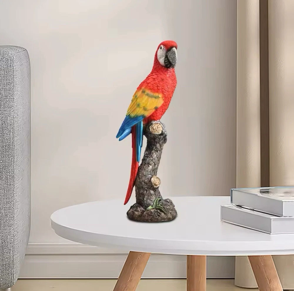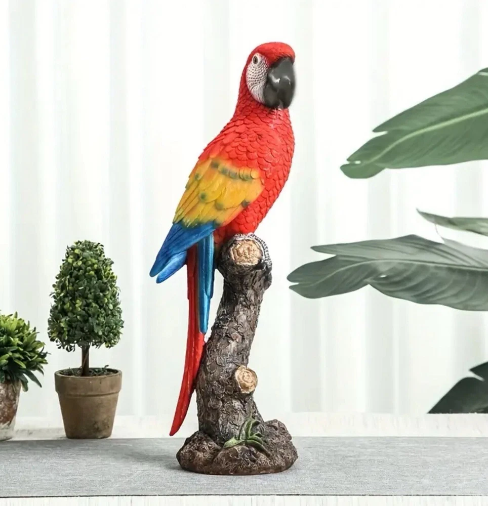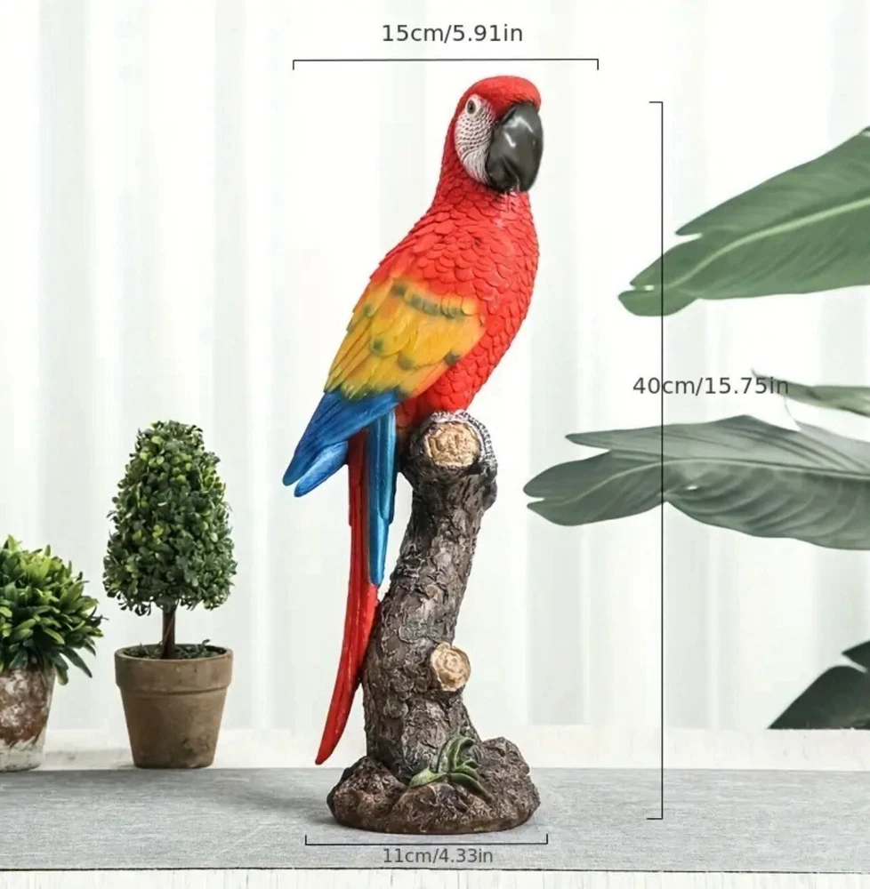 The Parrot Statue is a colorful and modern resin figurine of a Parrot's head, measuring 13cmx15cmx40cm. It is designed as a cute desktop ornament for any room in the house, suitable for adults. The statue is a unique home decor piece featuring a multicolor design, ideal for adding a touch of charm to your living space or porch.