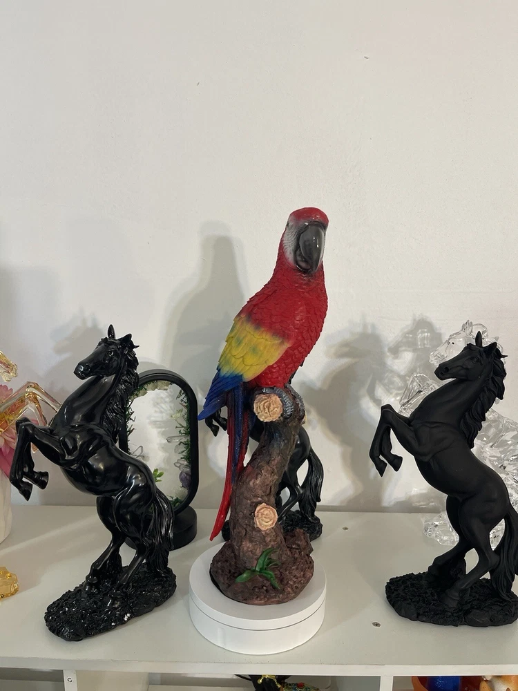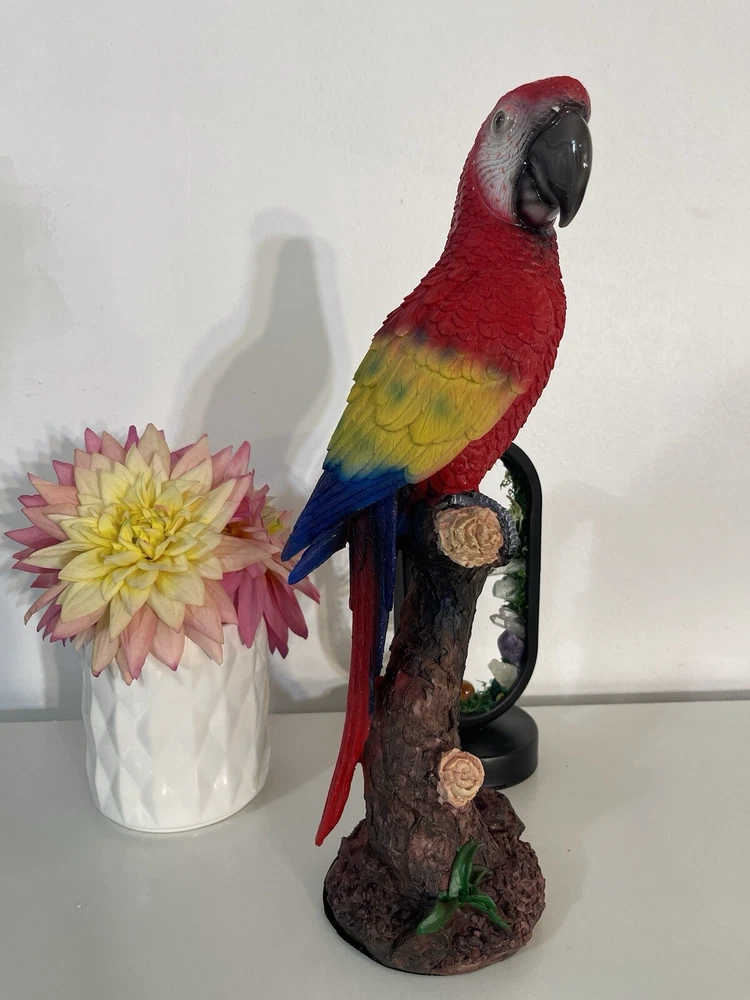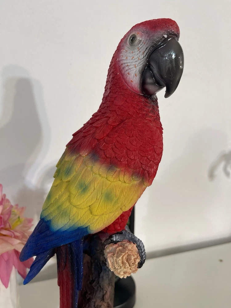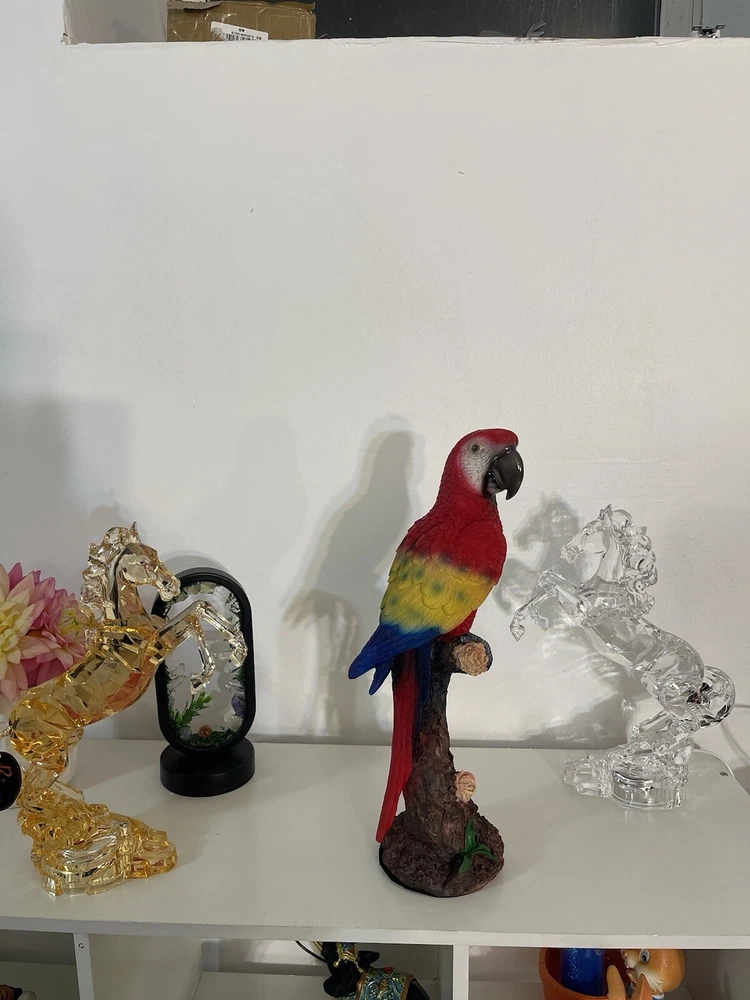 The Parrot Statue is a colorful and modern resin figurine of a Parrot's head, measuring 13cmx15cmx40cm. It is designed as a cute desktop ornament for any room in the house, suitable for adults. The statue is a unique home decor piece featuring a multicolor design, ideal for adding a touch of charm to your living space or porch.