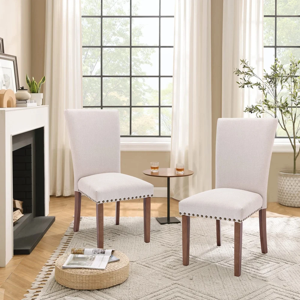 Parsons Dining Chairs Set of 2 Upholstered Nailhead Accent Kitchen Side Chairs Mid Century Modern Design