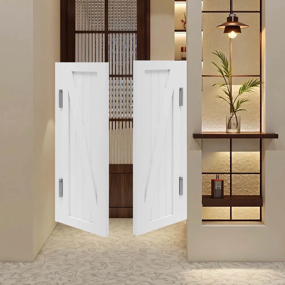 1 Pair Partition Swing Solid Pine Wood Door Partition Door For Shop Entrance