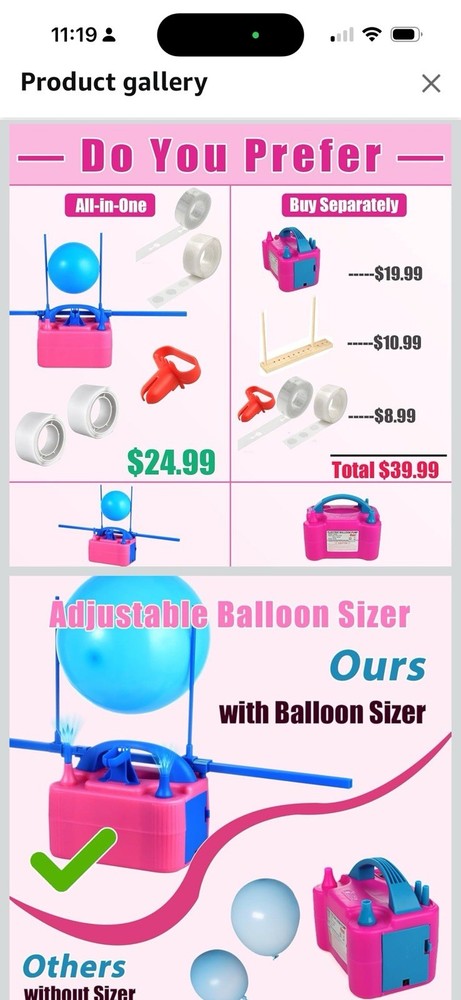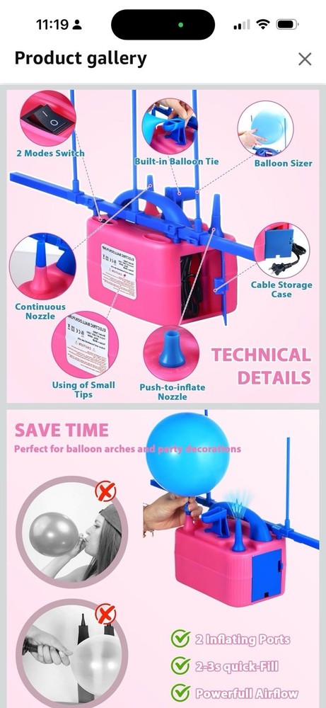 Party Zealot Electric Balloon Pump Pink Blue Dual Nozzles Balloon Sizer US Plug