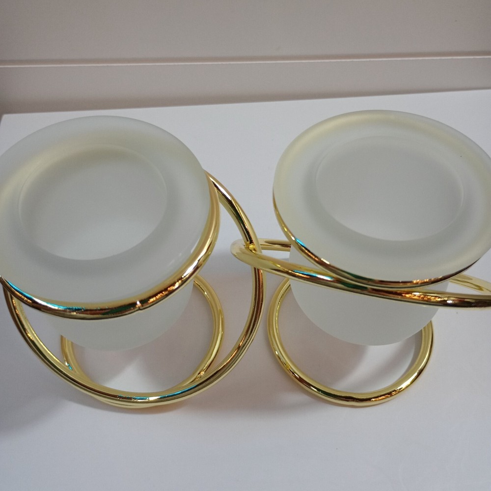 Elevate your home's ambiance with the PartyLite Gemini Candle Holder, an exquisite pair of frosted glass and gold metal votive holders. The contemporary design brings a touch of elegance to any setting, making them perfect for both casual and formal occasions. The holders' frosted finish adds a subtle texture that complements the gleaming gold color, ensuring they'll be a striking addition to your decor. This set comes with one set of two candle holders, allowing you to create a symmetrical or staggered display to suit your space. They're designed to accommodate PartyLite's Gemini fragrance sampler jars, but you can also use them with other standard votive candles for a versatile lighting solution. Whether you're setting the mood for a relaxing evening or adding a sophisticated flair to your living room, these candle holders are a thoughtful and stylish choice.