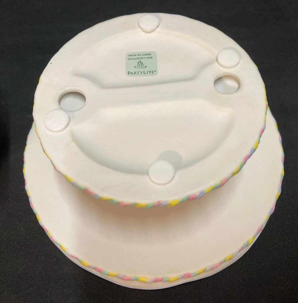 Partylite Ceramic Birthday Cake Tealight Holder with Base 7.5 Inches