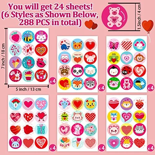 Partywind 24 Sheets Valentines Day Stickers Prize for Kids Classroom, Valentines Perfect Valentines Gifts or Prize for Kids Classroom: Package includes 6 styles, 4 sheets of each style (228 PCS, 24 sheets in total). Super cute designs includes various creative heart designs with bright colors and super cute animals that kids will love. These stickers will bring you joy and love at Valentines day! Multiple Use: Suitable for Valentines Day accessories or decorations, envelopes, greeting cards, cake topper, gift box, goodie bag, scrapbooking and so on. Perfect choice as rewards or gifts for kids. Enough number of stickers, which means that every kid in the classroom can get a sticker. No kids can refuse these colorful stickers! Self-Adhesive Valentines Day stickers: These cute stickers are self-adhesive. Just peel them off and paste them anywhere you want. They can adhere to most surfaces. Standard Quality Material: Each sheet measures 5.12 " x 7 ". The diameter of each sticker is 1.5 inch. We only use environmentally friendly non-toxic paper plus high quality glue to create a cute sticker. Safe for kids and adults, please rest assured that you use. There are many other super cute Valentines decorations in our store. If you need them, please click Partywind to enter the store to get more fun! Package Contents: You will get 24 sheets Valentine's day Stickers (228 PCS, includes 6 styles, 4 sheets of each style) Product Feature: Each sheet measures 5.12 " x 7 " (Each sticker is about 1.5 inch) Self-Adhesive and easy to use. Perfect for: Valentines day accessories or decorations, Goodie bags stuffers, Valentines gifts for kids, Reward for kids class, Envelopes, Greeting cards, Cake topper, Gift box, Goodie bag, Scrapbooking Shipping We offer FREE shipping on all orders! We ship within Three business days of payment, usually sooner. We use a selection of shipping services such as UPS, FedEx, USPS etc. We only ship to the lower 48 states, no APO/FPO addresses or PO Boxes allowed. Local pickups and combined shipping options are not provided at this time. Return You can return a product for up to 30 days from the date you purchased it. Any product you return must be in the same condition you received it and in the original packaging. Please keep the receipt. Payment We accept payment by any of the following methods: PayPal Please pay as soon as possible after winning an auction, as that will allow us to post your item to you sooner! Feedback Customer satisfaction is very important to us. If you have any problem with your order, please contact us and we will do our best to make you satisfied. Contact Us If you have any queries, please contact us via ebay. We usually respond within 24 hours on weekdays. Please visit our eBay store to check out other items for sale! Thank you for shopping at our store.