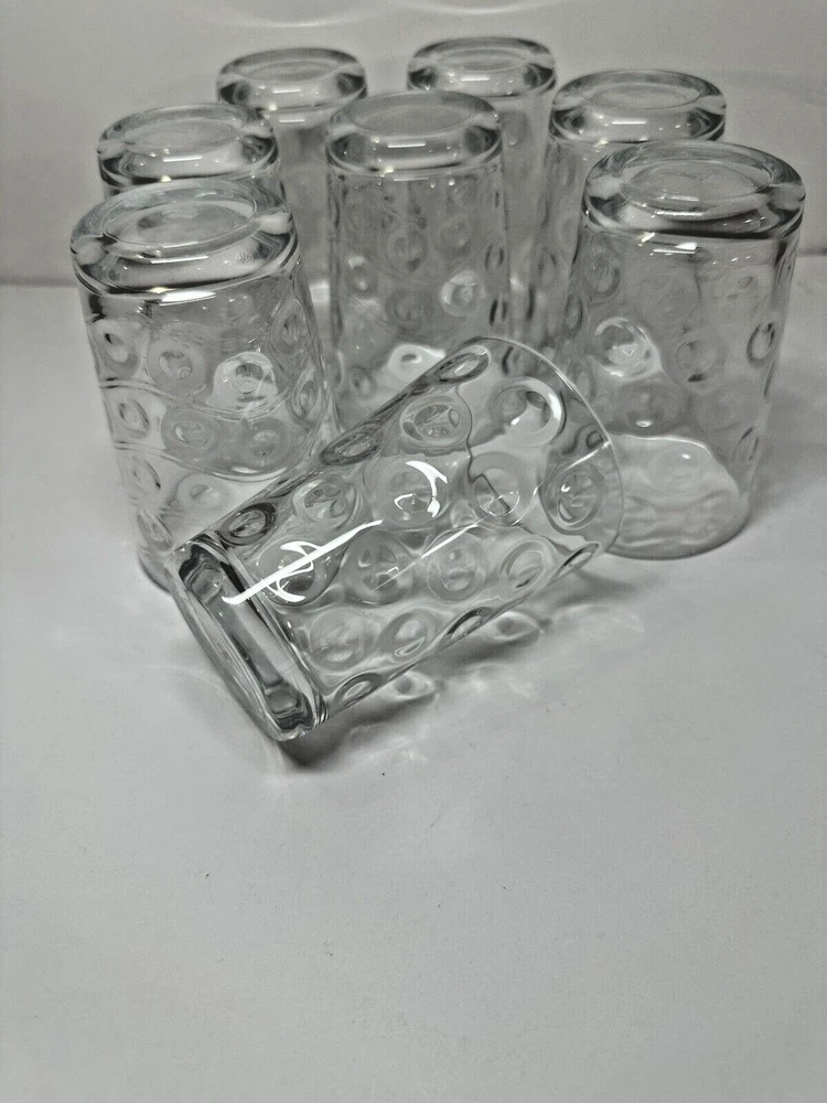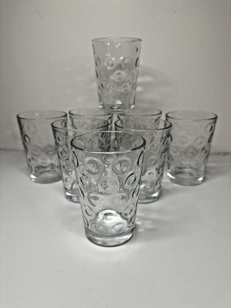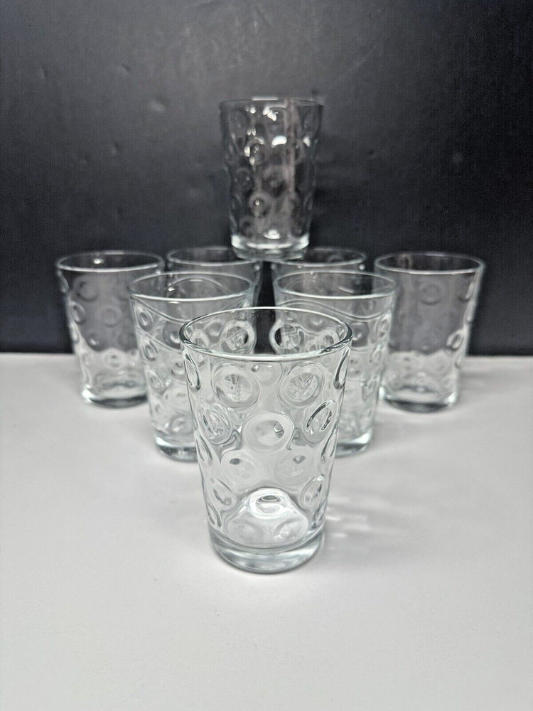 Set 8 ~ Vintage Pasabahce Turkish Dot Optic Circle Old Fashioned Juice Glasses Approximately: 4" H x 2 5/8" D (at the top) ~ Capacity 6oz Nice set, there are no cracks, scratches or stains. Thank you for looking. Check out my other items I have in my store. ~~Corner Side Variety~~ Items come from a smoke & pet free home Please view all of the pictures. I try to examine all pieces closely and note any issues. If you need more pictures or have any questions, please ask prior to purchasing, to ensure you are satisfied with your purchase. I strive for 100% customer satisfaction and value your positive feedback. If I charge for shipping, I will combine shipping with multiple purchases. Shipping and Handling includes a tracking number. NOTE: Depending on final packing & your zip code, I may use FedEx or UPS instead of USPS.