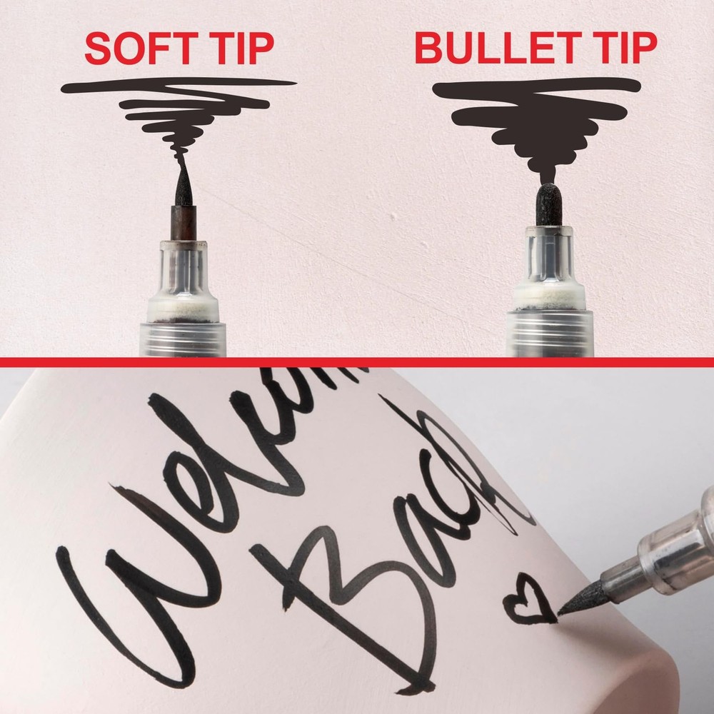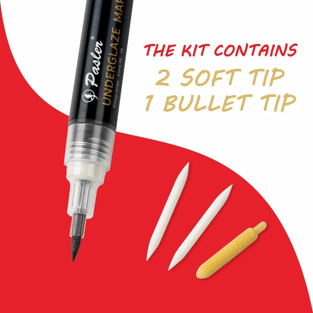 About this item SMOOTH & PRECISE APPLICATION: The soft tip design glides effortlessly on pottery bisque , allowing for smooth, even lines and detailed artwork. Ideal for both beginners and experienced ceramic artists. HIGH-QUALITY WATER-BASED FORMULA: This opaque underglaze marker features a blendable, quick-drying water-based formula , giving you vibrant color control and clean results on ceramic surfaces. EASY TO CLEAN & MAINTAIN: The marker tip can be rinsed with water to keep it clean and in perfect condition for continued use — no clogging or hardening. FUN & VERSATILE FOR CREATORS: A fluid, fun, and creative tool , perfect for decorating, outlining, and personalizing pottery, ceramic, or clay pieces before firing. FIRING & FINISH DETAILS: Can be fired directly or used under a clear glaze for a glossy finish. Suitable for Cone 05 (1046°C) to Cone 6 (1222°C) firings. Food-safe after glazing , making it ideal for functional and decorative pottery.