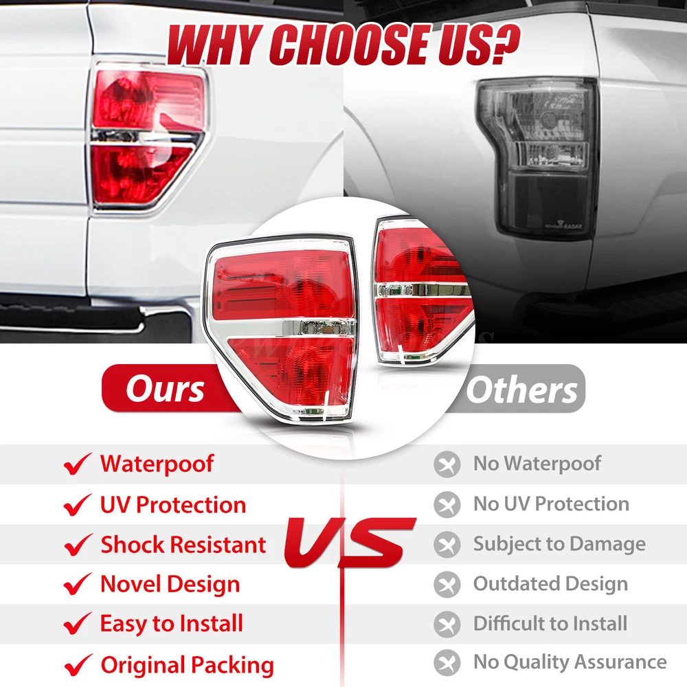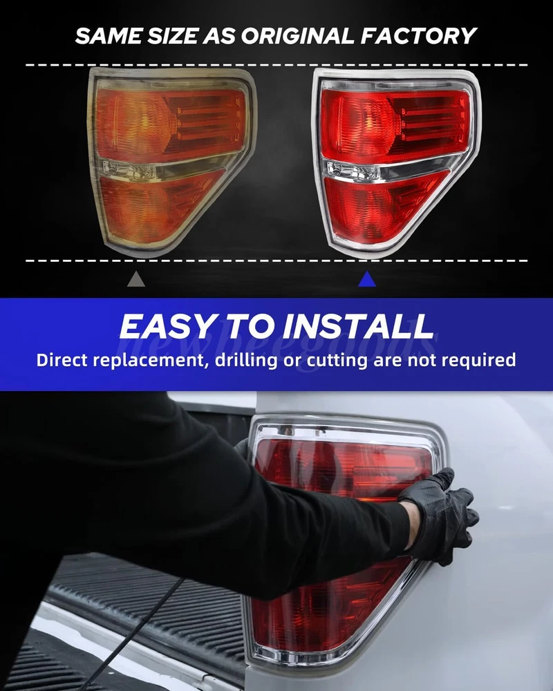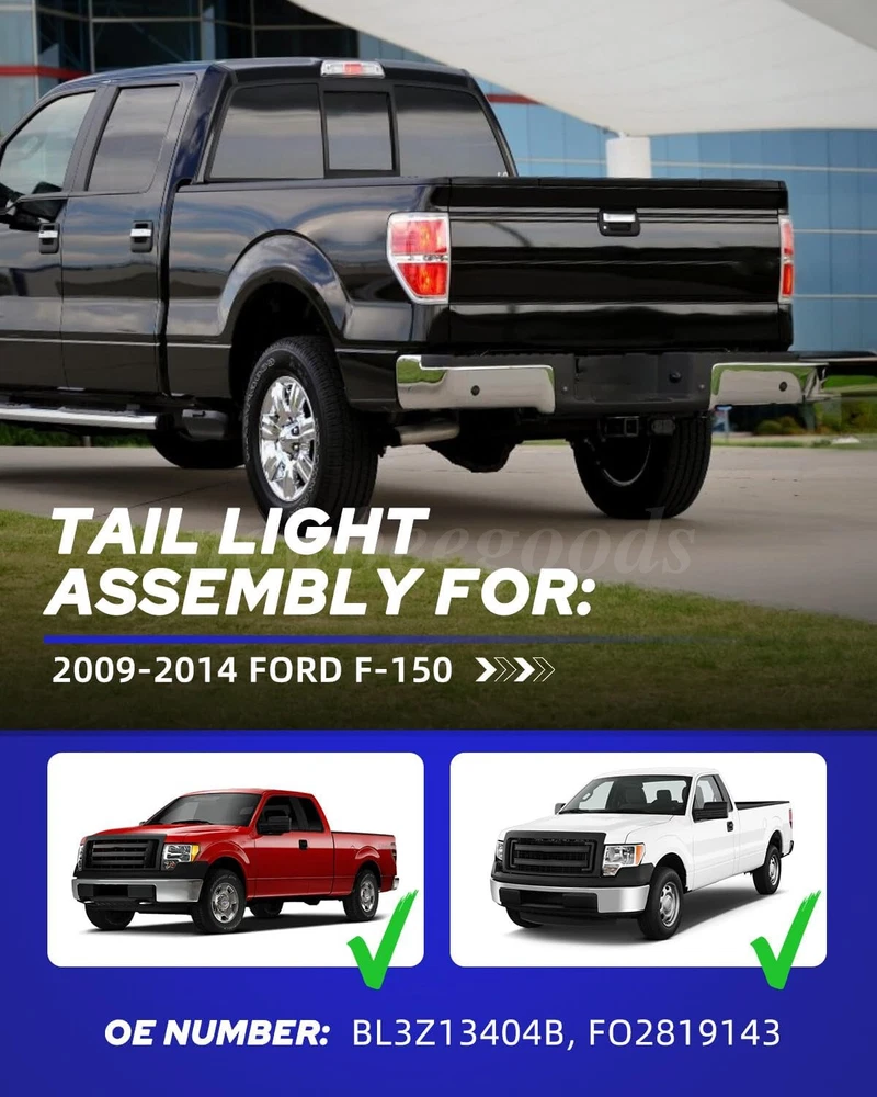 Welcome to NewBeeGoods feedback | contact us Location United States Hours Open 24/7 Support Feel free to Contact us Electronics Motors Supplies Home & Garden Pet Supplies Business & Industrial Newbeegoods USD 26.89 Passenger RH Right Brake Lamp Tail Light For Ford F150 F-150 2009-2014 Red Lens Specification: Type: Tail lamp assembly (without bulb) Wire harness without bulb OE number: BL3Z13405B BL3Z13404B BL3Z13405A BL3Z13404AA Lighting type: halogen Shell color: chrome Lens color: red Material: plastic Location on the vehicle: rear, right Usage: direct replacement Included items: passenger's side Special function: waterproof Waterproof: IP67 grade Features: 【Anti-UV Coating Enhances Lens Strength】 The unique addition of UV protection coating can improve the strength of the lens, prolong the service life, and protect the tail lights to keep them clear and bright for a long time. 【Quality Assurance】 Strict quality control, using high-quality plastic structure, not easy to wear, to ensure the maximum performance and long service life of the tail light. 【No Modification or Drilling Required】 All the replaced taillights are ready to install plug and play wiring harnesses, and the direct bolting of the taillights is replaced, so you can get back on the road with peace of mind and be sure that your vehicle can be seen safely at night or in bad weather. 【Impact Resistance】 High impact resistance, able to withstand accidental collisions and bumpy road conditions, ensure the safety of the taillights, durable and reliable, and worry-free for long-term use. 【Novel Design】 Carefully designed to match your vehicle perfectly and blend seamlessly into the overall look. 【100% Brand New Original Packaging】 This headlight assembly guarantees 100% brand new original packaging, ensuring that you get a high-quality product. Fitment: Fit for: 2014 F-150 FX4 2-Door, Standard Cab Pickup 2014 F-150 FX4 4-Door, Crew Cab Pickup 2014 F-150 FX4 4-Door, Extended Cab Pickup 2010-2012 F-150 Harley-Davidson Edition Styleside 2014 F-150 King Ranch 4-Door, Crew Cab Pickup 2014 F-150 Lariat 4-Door, Crew Cab Pickup 2014 F-150 Lariat 4-Door, Extended Cab Pickup 2011 F-150 Lariat Limited Styleside 2014 F-150 Limited 4-Door, Crew Cab Pickup 2013 F-150 Limited Styleside 2014 F-150 Platinum 4-Door, Crew Cab Pickup 2014 F-150 STX 2-Door, Standard Cab Pickup 2014 F-150 STX 4-Door, Crew Cab Pickup 2014 F-150 STX 4-Door, Extended Cab Pickup 2014 F-150 SVT Raptor 4-Door, Crew Cab Pickup 2014 F-150 SVT Raptor 4-Door, Extended Cab Pickup 2014 F-150 XL 2-Door, Standard Cab Pickup 2014 F-150 XL 4-Door, Crew Cab Pickup 2014 F-150 XL 4-Door, Extended Cab Pickup 2014 F-150 XLT 2-Door, Standard Cab Pickup 2014 F-150 XLT 4-Door, Crew Cab Pickup 2014 F-150 XLT 4-Door, Extended Cab Pickup 2009-2013 F-150 (submodel: FX4, King Ranch, Lariat, Platinum, STX, XL, XLT) Styleside Not compatible on Flareside Models Package Contents: 1 x Right Passenger-side taillight Installation guides or instructions are not included Note: 1. Please confirm if the headlights are suitable for your vehicle before purchasing. 2. If there is difficulty in installation, professional installation is highly recommended. 3. Before driving, please check whether the lights are installed firmly to ensure driving safety. 4. Due to the difference in display and lighting, the picture may be slightly different from the actual product. 5. If you have any questions about the product, please contact us. Shipping Returns Payment We only support transactions through the eBay, not other channels. We support all payment methods recommended by ebay. We promise to protect all the private information of our customers. It will take about 1-5 working days to reach you within USA. If your item develops a fault due to a manufacturing defect please contact us and we guarantee a satisfactory solution. If you return your item for any other reason within 30 days from receipt we will refund you. 100% Feedback - we're proud of our 100% record and aim to keep it that way! Please contact us if you're not entirely happy with your order and we'll try to rectify it ASAP! Our aim is to ship within 24 hours. All of our products are shipped locally from USA, with warehouses in PA and CA. But most of our inventory is in CA, so 90% of our products are packaged and delivered to you at our CA warehouse. We recommend using economy and standard shipping for shipping, such as FedEx and USPS. Due to various traffic and policy limited, express shipping sometimes does not deliver in time. Normaly, you will take the item within 1-5 days after you place it. other products Consumer Electronics BGPS, Video, Camera, Radio, and other Smart Electronics Motors Supplies LED Headlighs, Fog Lights, Seat Belt, Jump Starter Home & Garden Home Storage, Cleaning, Lighting, and Other Tools Pet Supplies Training, Grooming, Living, Eating for Pet About Newbeegoods Newbeegoods was born in Nov 11, 2022. We have been deeply involved in the auto and motorcycle parts industry for decades, and since 2020 we have been creating our e-commerce company, as well as expanding our business into other industries. Newbeegoods is already one of our 24 e-commerce subsidiaries and we trade in European countries including the USA, UK and Germany, and have established our independent warehouses in each country of sale. We have the confidence and ability to provide consumers with 100% product quality assurance and after-sales service. quick links Listings About Us Feedback Contact Us