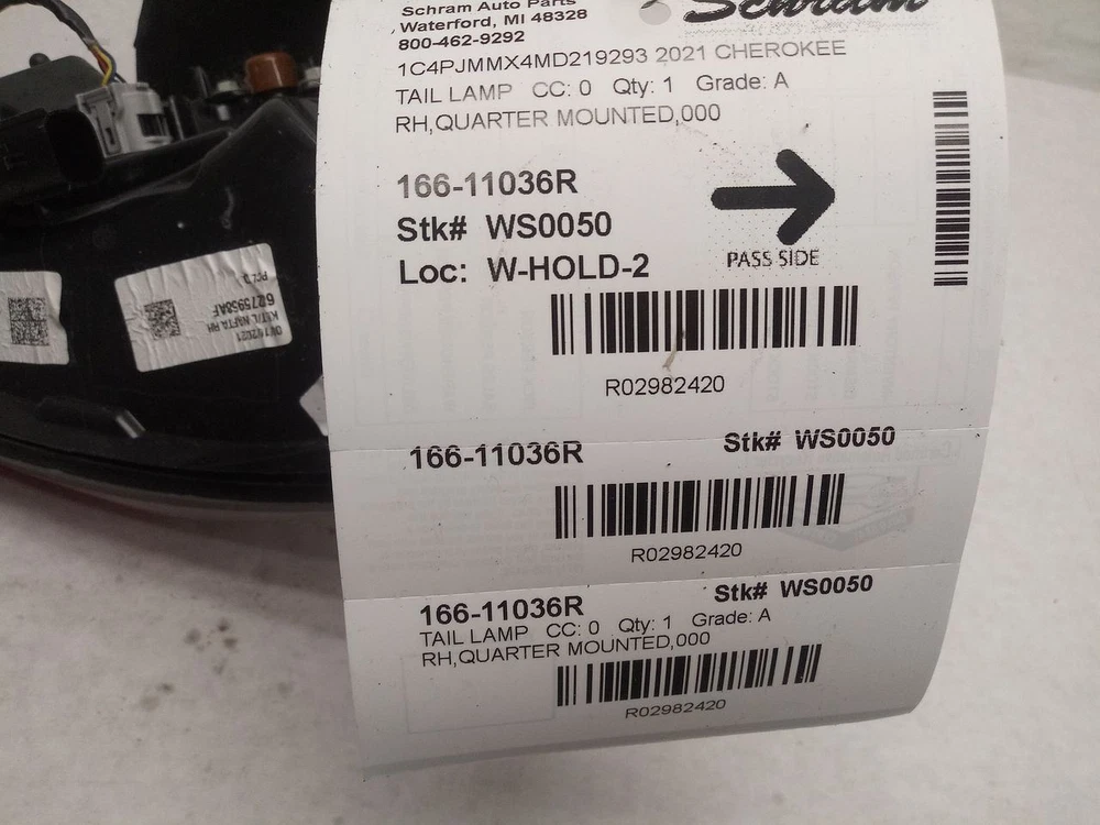 Store Home About Us Customer Resources Feedback Contact Us Passenger Tail Light Quarter Panel Mounted Fits 19-23 CHEROKEE 2982420 Free Shipping - 90 Day Warranty - Est. 1923 Description Enhance Your Vehicle's Rear Visibility with a Quality Taillight Schram Auto and Truck Parts - Taillight Illuminate the road behind you and enhance your vehicle's rear visibility with a reliable Taillight from Schram Auto and Truck Parts, Inc. Our selection of taillights ensures that you can drive with confidence, knowing that your vehicle is visible to other drivers. Every taillight may have light scratching from normal use, but we're here to provide detailed part information in our conditions and options section, helping you make an informed decision before purchasing. Clarity Matters Driving with a functional taillight is crucial for your safety and the safety of others on the road. Ensure you're getting the right fit by checking the 'interchange' portion of this listing, and feel free to contact us with any questions you may have. Your Questions Are Valued Our commitment to your satisfaction means that Chad, our knowledgeable specialist, is ready to address any inquiries you might have. Don't hesitate to reach out for the information you need to make a confident choice. Upgrade your vehicle's safety and ensure you're visible to others on the road with a quality Taillight from Schram Auto and Truck Parts, Inc. Drive with peace of mind knowing that your rear lights are in optimal condition. Drive with Confidence Driving with a well-functioning taillight isn't just a matter of compliance – it's about ensuring your safety and the safety of those around you. Let us help you find the right taillight for your vehicle. Vehicle 2021 CHEROKEE Mileage 37000 Part Grade A What's this? Conditions RH,QUARTER MOUNTED,000 Fitment Guide This item will fit the following vehicles / applications: CHEROKEE 19-21 quarter panel mounted, (LED), R. CHEROKEE 22-23 quarter panel mounted, R. R# 2982420 Stk# WS0050 Holl# 166-11036R More Parts for 2021 CHEROKEE » More Parts from this exact vehicle. » Accessories Brakes and suspension Cooling Systems Electrical and Lighting Engine and Drivetrain Exterior Parts & Sheet Metal Interior Parts Wheels and Tires Customer Service Payments Shipping International Returns FAQs Contact Us Quick Links Store Home About Us Feedback