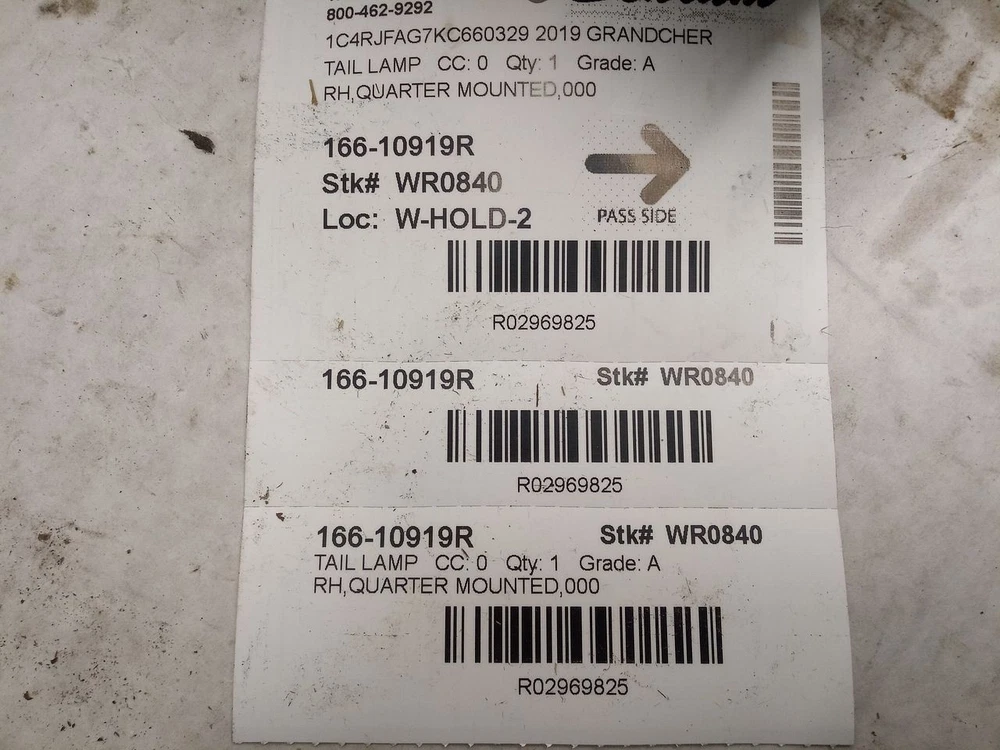 Store Home About Us Customer Resources Feedback Contact Us Passenger Tail Light Wk Body VIN E Or F Fits 15-21 GRAND CHEROKEE 2969825 Free Shipping - 90 Day Warranty - Est. 1923 Description Enhance Your Vehicle's Rear Visibility with a Quality Taillight Schram Auto and Truck Parts - Taillight Illuminate the road behind you and enhance your vehicle's rear visibility with a reliable Taillight from Schram Auto and Truck Parts, Inc. Our selection of taillights ensures that you can drive with confidence, knowing that your vehicle is visible to other drivers. Every taillight may have light scratching from normal use, but we're here to provide detailed part information in our conditions and options section, helping you make an informed decision before purchasing. Clarity Matters Driving with a functional taillight is crucial for your safety and the safety of others on the road. Ensure you're getting the right fit by checking the 'interchange' portion of this listing, and feel free to contact us with any questions you may have. Your Questions Are Valued Our commitment to your satisfaction means that Chad, our knowledgeable specialist, is ready to address any inquiries you might have. Don't hesitate to reach out for the information you need to make a confident choice. Upgrade your vehicle's safety and ensure you're visible to others on the road with a quality Taillight from Schram Auto and Truck Parts, Inc. Drive with peace of mind knowing that your rear lights are in optimal condition. Drive with Confidence Driving with a well-functioning taillight isn't just a matter of compliance – it's about ensuring your safety and the safety of those around you. Let us help you find the right taillight for your vehicle. Vehicle 2019 GRANDCHER Mileage 65000 Part Grade A What's this? Conditions RH,QUARTER MOUNTED,000 Fitment Guide This item will fit the following vehicles / applications: GRAND CHEROKEE 15-19 quarter panel mounted, w/bezel trim, chrome bezel trim, R. GRAND CHEROKEE 20 quarter panel mounted, w/bezel trim, chrome bezel, R. GRAND CHEROKEE 21 WK body (VIN E or F, 6th digit), quarter panel mounted, w/bezel trim, chrome bezel, R. R# 2969825 Stk# WR0840 Holl# 166-10919R More Parts for 2019 GRANDCHER » More Parts from this exact vehicle. » Accessories Brakes and suspension Cooling Systems Electrical and Lighting Engine and Drivetrain Exterior Parts & Sheet Metal Interior Parts Wheels and Tires Customer Service Payments Shipping International Returns FAQs Contact Us Quick Links Store Home About Us Feedback