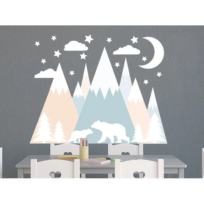 Pastel Mountain Wall Decal Girl Bedroom - Bears Decor Kids Room - Pine Trees and Mountains Mural Sticker - Stars and Moon Vinyl Decoration Here you can find all kinds of wall decal creations suitable for you living room, bedroom, nursery room, office you name it, if it's a flat surface, it will stick to it. ABOUT OUR DECALS: Our High Quality wall decals art are proudly made in the USA. We use High Quality Vinyl material and high quality inks, safe for you and your children. Decals can be used for interior and exterior purposes. The sticker's color will stay vibrant and beautiful for many years of enjoyment. Decals are easy to remove but they are not reusable. APPLICATION OF DECALS: Must be applied on a flat, dry, clean, smooth surface. Can be applied on walls, furniture, Free Shipping Over $49.99* Details Pastel Mountain Wall Decal Girl Bedroom - Bears Decor Product Description: Pastel Mountain Wall Decal Girl Bedroom - Bears Decor Kids Room - Pine Trees and Mountains Mural Sticker - Stars and Moon Vinyl Decoration Here you can find all kinds of wall decal creations suitable for you living room, bedroom, nursery room, office you name it, if it's a flat surface, it will stick to it. ABOUT OUR DECALS Our High Quality wall decals art are proudly made in the USA. We use High Quality Vinyl material and high quality inks, safe for you and your children. Decals can be used for interior and exterior purposes. The sticker's color will stay vibrant and beautiful for many years of enjoyment. Decals are easy to remove but they are not reusable. APPLICATION OF DECALS: Must be applied on a flat, dry, clean, smooth surface. Can be applied on walls, furniture, glass, floor, wood or any other smooth and clean surface. Can not be applied on concrete or textured surface. If you want to apply sticker on floor, lamination is required Are not recommended for application over paints advertised as being stain-resistant or washable (like acrylic, latex etc). These paints are crafted to prevent things from sticking including vinyl decals. If your wall has been recently painted, wait at least 4 - 8 weeks before applying your decal. Step by step instructions are included with your purchase. For large sizes two people are recommended for installation of the wall decal. COLOR AND COLOR INFORMATION The color of the printed motifs may differ slightly from the color of the screen, depending on screen configuration. Colors look different on different monitors, please purchase a sample if you do really concern the colors and quality. Picture may not reflect true size. It can be bigger for showing purpose. It helps you to watch all details.