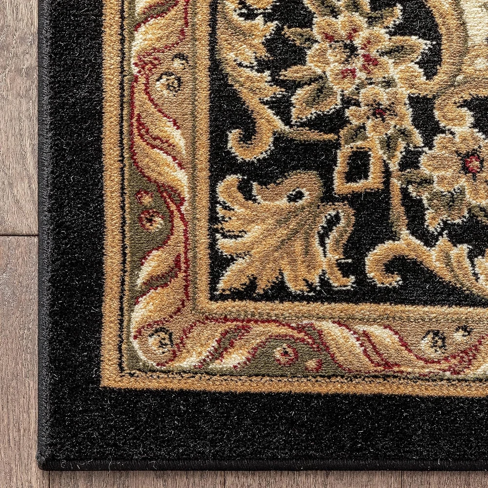 Pile Height: Medium Pile Brand: Does not apply Seasons: All seasons gtin13: 705353135880 Pattern: Floral Age Range (Description): Adult Rug Form Type: Area Rug Construction Type: Machine Made Model Name: Pastoral Occasion: Formal Events, Housewarming, Wedding Is Autographed: No Size: 5'3" x 7'3" Theme: Floral,Medallion,Contemporary,Modern,Pastoral Weave Type: Knotted Item model number: P-36335 Product Dimensions: 87"L x 63"W Recommended Uses For Product: Living Room, Dining Room UPC: 705353135880 Indoor/Outdoor Usage: Indoor Room Type: Kitchen, Bedroom, Living Room, Home Office, Dining Room Is Stain Resistant: Yes Back Material Type: Jute Water Resistance Level: Water Repellent Style: French Item Thickness: 0.8 Inches Item Weight: 19 Pounds Country of Origin: Turkey Shape: Rectangular Material: Polypropylene Special Feature: Fade Resistant, Stain Resistant Number of Pieces: 1 Type: Does not apply Color: Black