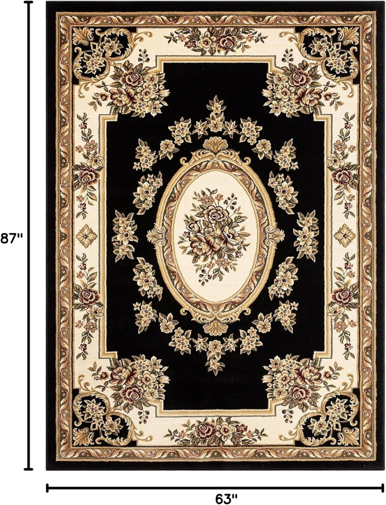 Pastoral Medallion Black French European Formal Traditional Area Rug (5'3" X 7'3