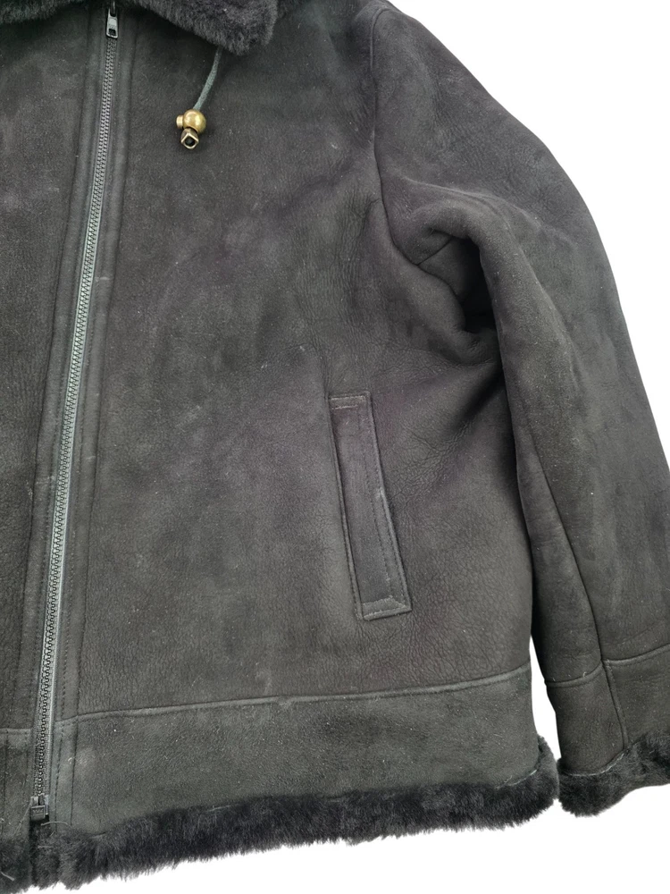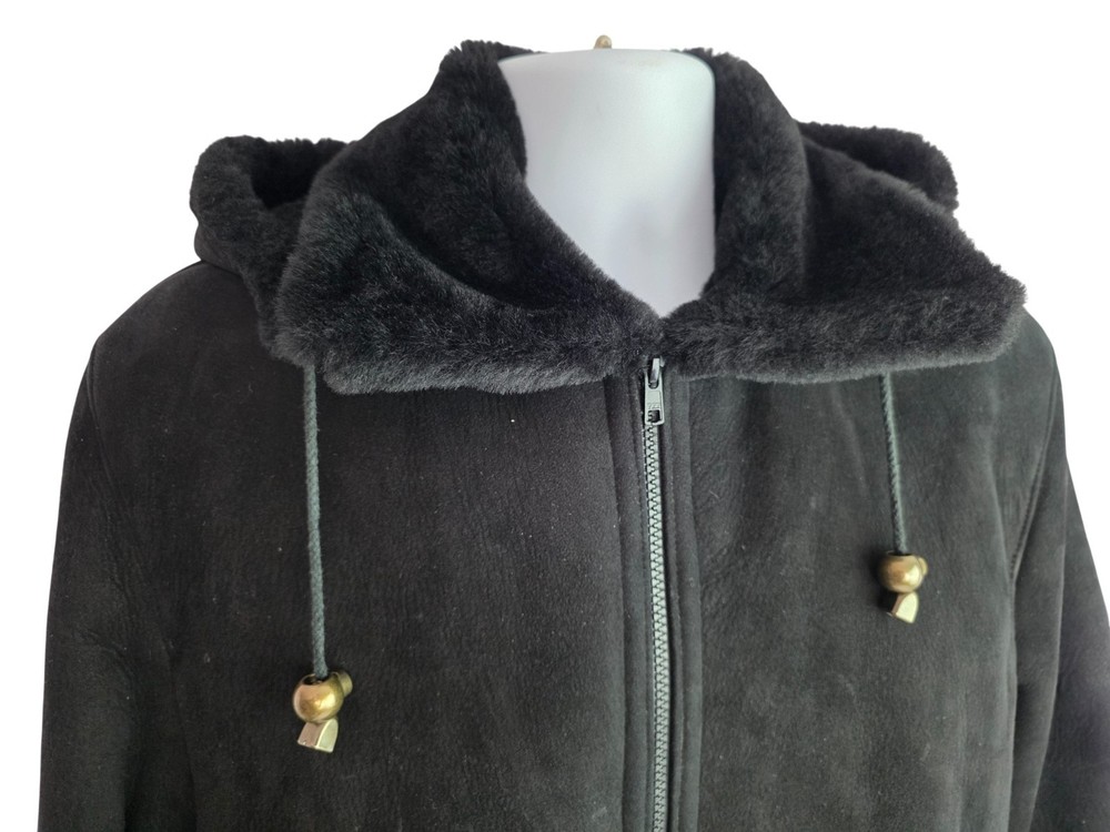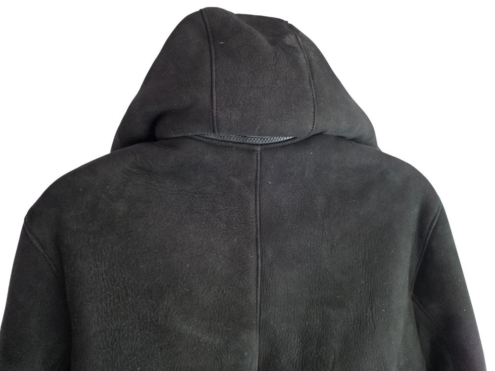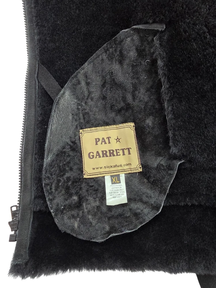 Available for sale is a very nice Men's Pat Garrett Leather Shearling Sheepskin Hooded Bomber Zip Jacket in size XL (check below measurements). This is a very beautiful US-made Pat Garrett Leather Shearling Bomber Full Zip jacket that is in a beautiful black color with black sheepskin lined fur on the interior. This jacket is very thick and warm and is of exceptional quality, made in the United States by Pat Garrett whose quality compares to the best jackets by Overland, Milano, Schott, and other brands. The jacket comes with a metal zipper, and two front pockets. This jacket is in very good shape with very minor wear on the exterior with a few small marks. The jacket has no holes, tears, odors, stains, or major flaws. Please check the measurements below. Measurements: Shoulder: 19" Chest: 24" Sleeve: 25.5" Length: 29" Payment: eBay Payments and PayPal. Shipping: We ship using USPS Ground Advantage or USPS Priority Mail and shipping is free to all 50 states. We also offer international shipping using eBay's International Shipping service. Returns: Please note we describe all items as carefully as we can and we only accept returns if an item was misrepresented in some way.