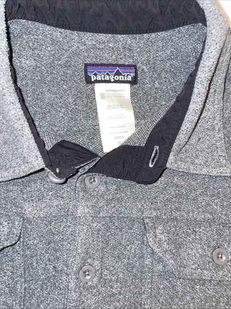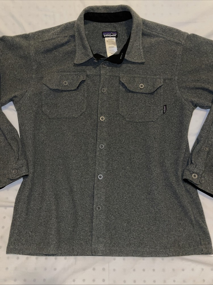The Patagonia Better Sweater Shirt Jacket is a versatile mid-length jacket for men, designed in a stylish shacket style. Made from polyester fleece in a solid gray color, it features a spread collar, button closure, and embroidered logo accents. This jacket is suitable for various occasions such as travel, casual wear, or workwear, with features including pockets, all-season wearability, and machine washable care. Ideal for outdoor activities like walking or hiking, this jacket combines functionality with a classic, minimalist design influenced by nature and streetwear aesthetics.
