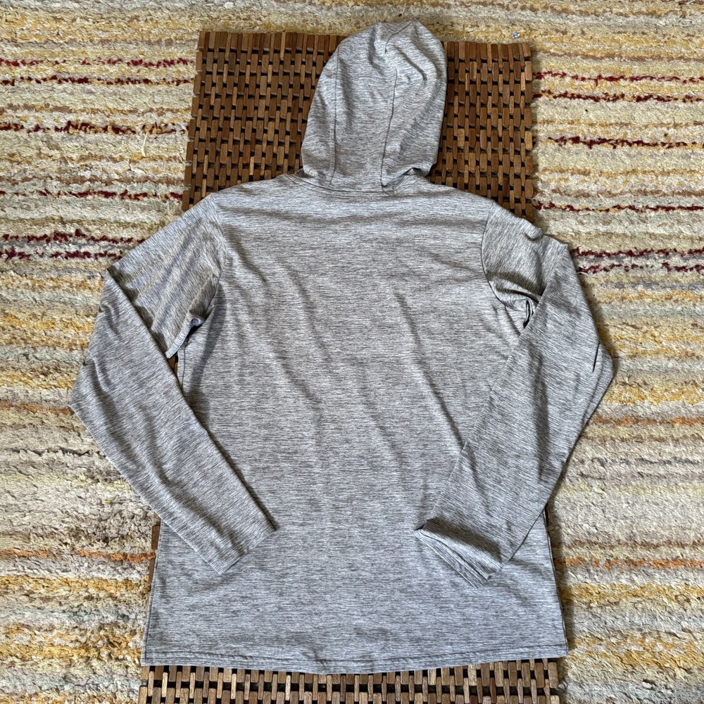 The Patagonia Capilene Pullover Ultralight Hoodie in Heather Grey is a versatile and stylish garment perfect for outdoor activities in the winter, fall, and spring seasons. Made from soft cotton material, this hoodie features a solid color design with long sleeves and a crew neck neckline. The regular fit and pullover style make it easy to wear and comfortable for everyday use. This hoodie is machine washable for easy care, making it a practical and convenient addition to any man's wardrobe.
