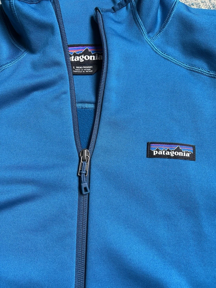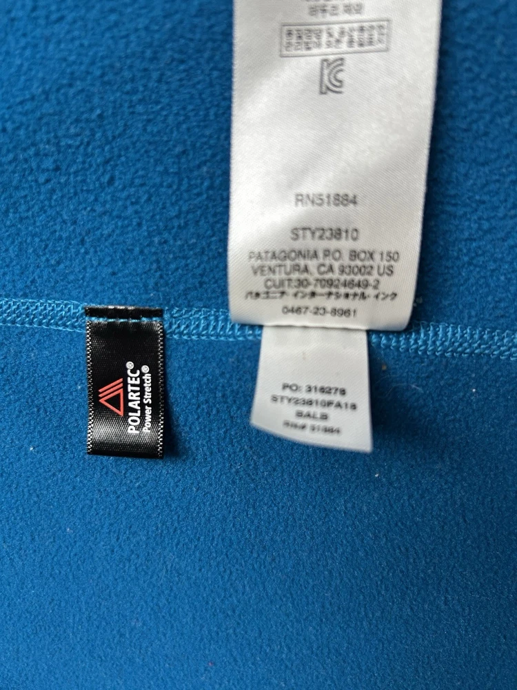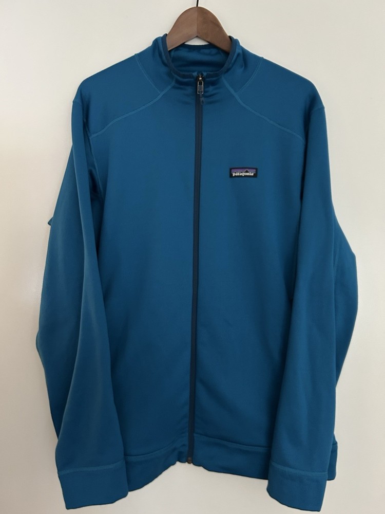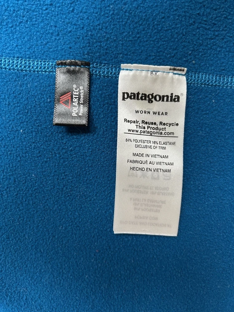 Patagonia Men's Crosstrek Jacket pre-owned very Good Condition, No rips, No stains, No pilling, all zippers work size:L color:BALB Style: 23810 Polartec® Power Stretch® fleece fabric provides next-to-skin comfort during movement, and durability and stretch for full range of motion Flat-seam stitching for reduced bulk and chafing Cuffs constructed for ease of movement and minimal bulk, with added thumb loops for comfort Two zippered hand pockets; right pocket contains internal media pocket 6.8-oz Polartec® Power Stretch® 84% polyester/16% spandex jersey face with a fleece back. Fabric is certified as bluesign® approved 14.2 ounces
