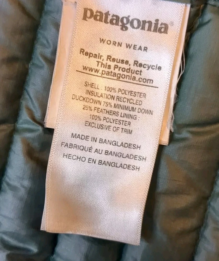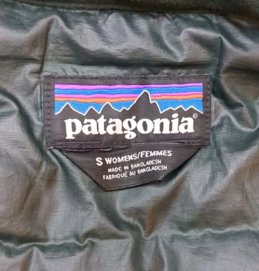 Patagonia Down Sweater Jacket Puffer Parka Packable Bag Zip Green Womens Small