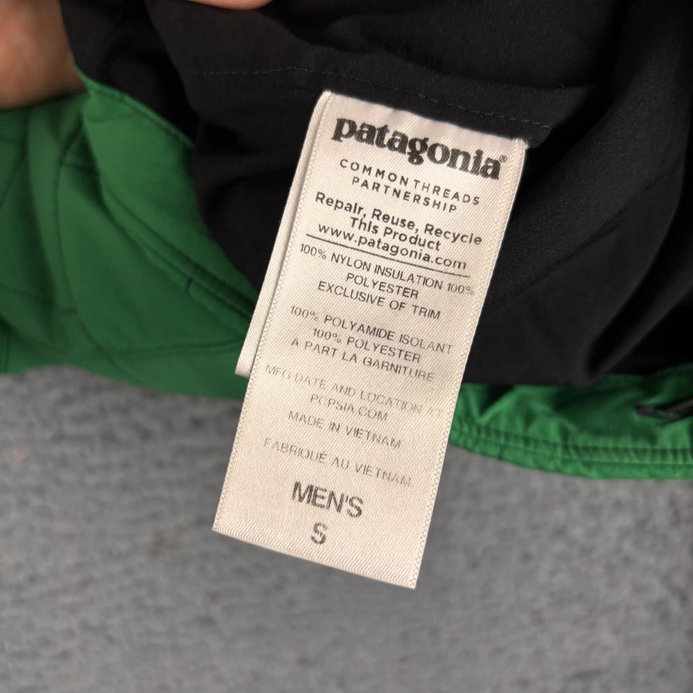 Colour: Green Features: Hooded, Insulated Performance/Activity: Walking Theme: Outdoor Size: S Type: Jacket Department: Men Style: Puffer Jacket Outer Shell Material: Nylon Brand: Patagonia