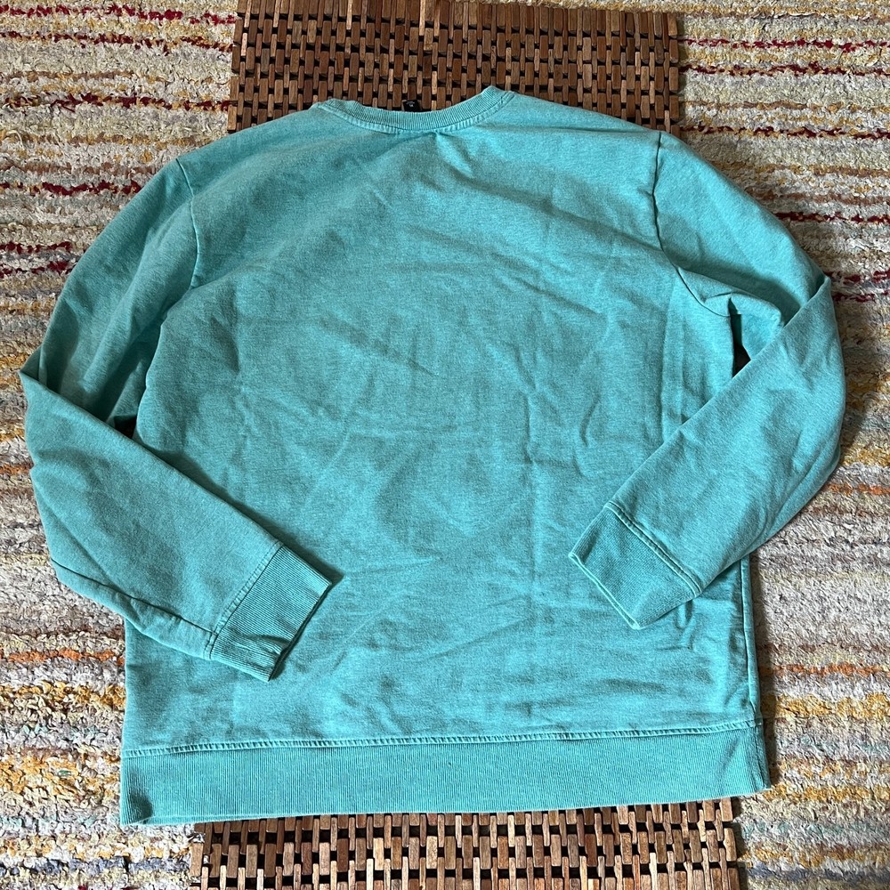 The Patagonia Live Simply Crew Neck Sweater Sweatshirt in green, men's size XL, is a stylish and comfortable pullover sweatshirt perfect for outdoor activities like hiking. Made with high-quality materials and featuring a solid pattern with a logo accent, this crew neck sweatshirt is easy to care for with its machine washable design. The regular fit and long sleeves make it ideal for cooling off in the winter, fall, or spring seasons, adding a touch of outdoor-themed flair to your wardrobe.