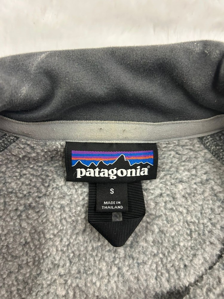 The Patagonia Men's Better Sweater 1/4 Zip Jacket in gray is a stylish and practical outerwear piece perfect for outdoor activities like walking and hiking in the winter, fall, and spring. Made from 100% polyester fleece, this mid-length jacket features a 1/4 zip closure and a band collar for a classic look. With its machine washable fabric and regular fit, this jacket offers both comfort and convenience for everyday wear or travel. Showcasing the iconic Patagonia logo, this jacket is a durable and versatile choice for any outdoor adventure.