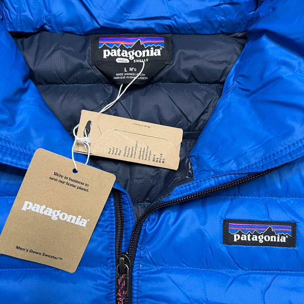 C06 / Patagonia Down Sweater Jacket - Men's / Blue Patagonia puffer jacket Large Ski - winter - hiking - outdoors - festival Events / party / boho / western - glam The perfect warmth for just about everything, our classic Down Sweater is lightweight and windproof with a shell built of NetPlus 100% postconsumer recycled nylon ripstop made from recycled fishing nets to help reduce ocean plastic pollution, and it's insulated with 800-fill-power 100% Responsible Down Standard down certified by Control Union (CU 880272). The purchase of Responsible Down Standard certified products demonstrates demand for better animal welfare practices in the down and feather supply chain