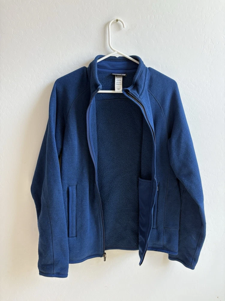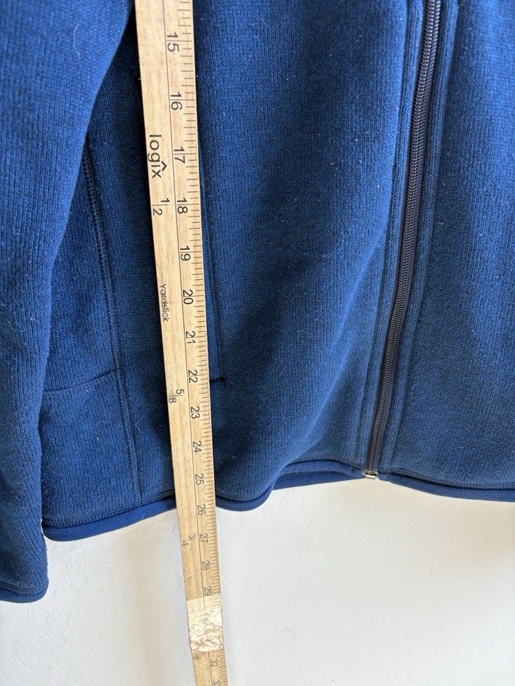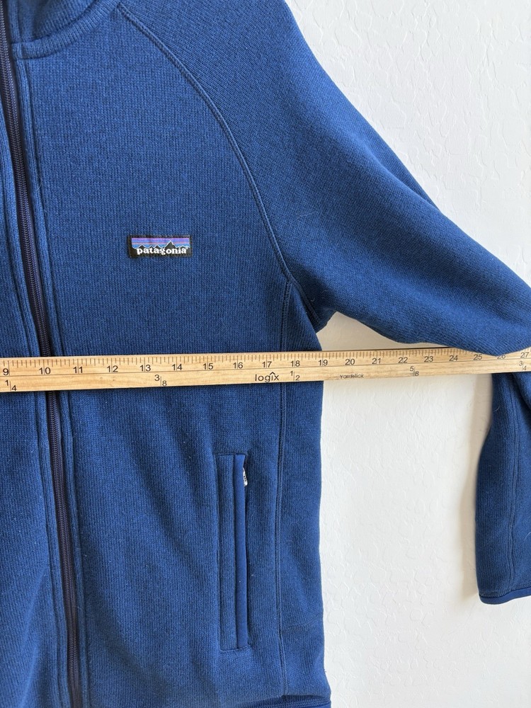 The Patagonia Men's Navy Blue Better Sweater Full Zip Fleece Jacket in size small is perfect for hiking and other outdoor activities. Made of polyester fleece, this mid-length jacket features a zip closure and a solid pattern. The regular fit and machine washable design make it convenient for everyday wear or travel. With the reputable brand of Patagonia and its focus on sustainable practices, this jacket is a stylish and functional choice for any adventure.