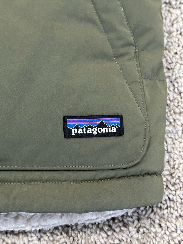 Up for bid is a Patagonia Men's Reversible Bivy Down Vest. It is a Men's Medium (M). Purchased in Fall 2025 Worn just one weekend. In excellent used condition (see pictures). This vest is the same style that Adam Brody's character Noah wore in Season 1 of the the Netflix TV show "Nobody Wants This" (not the original vest worn on-screen). NO international bidders, please. Shipping is $8.99 anywhere in the continental United States. I do not ship internationally. No returns, all sales are final. Size (approximate) Armpit to armpit: 21" Top Collar to bottom of shirt: 27" Item Description A water-resistant, reversible, insulated down vest with fleece lining that provides the perfect combination of warmth, functionality and durability. Made in a Fair Trade Certified™ factory. Shell: 100% recycled polyester with a DWR (durable water repellent) finish; yoke: recycled nylon; reverse side: 100% recycled polyester ¼"-pile fleece; insulation: 600-fill-power 100% Recycled Down (duck and goose down reclaimed from down products) Classic vest design features a front snap-placket and a warm, comfortable down-filled collar to protect your neck Face side has patch-on, side-entry handwarmer pockets lined with soft microfleece Reverse side has a patch-on, left-chest zippered pocket made with recycled nylon and side-entry handwarmer pockets with elastic binding Designed with a drop-tail hem for additional coverage on your backside Hip length provides additional coverage and pairs nicely with a hip belt or a harness Made in a Fair Trade Certified™ factory, which means the people who made this product earned a premium for their labor