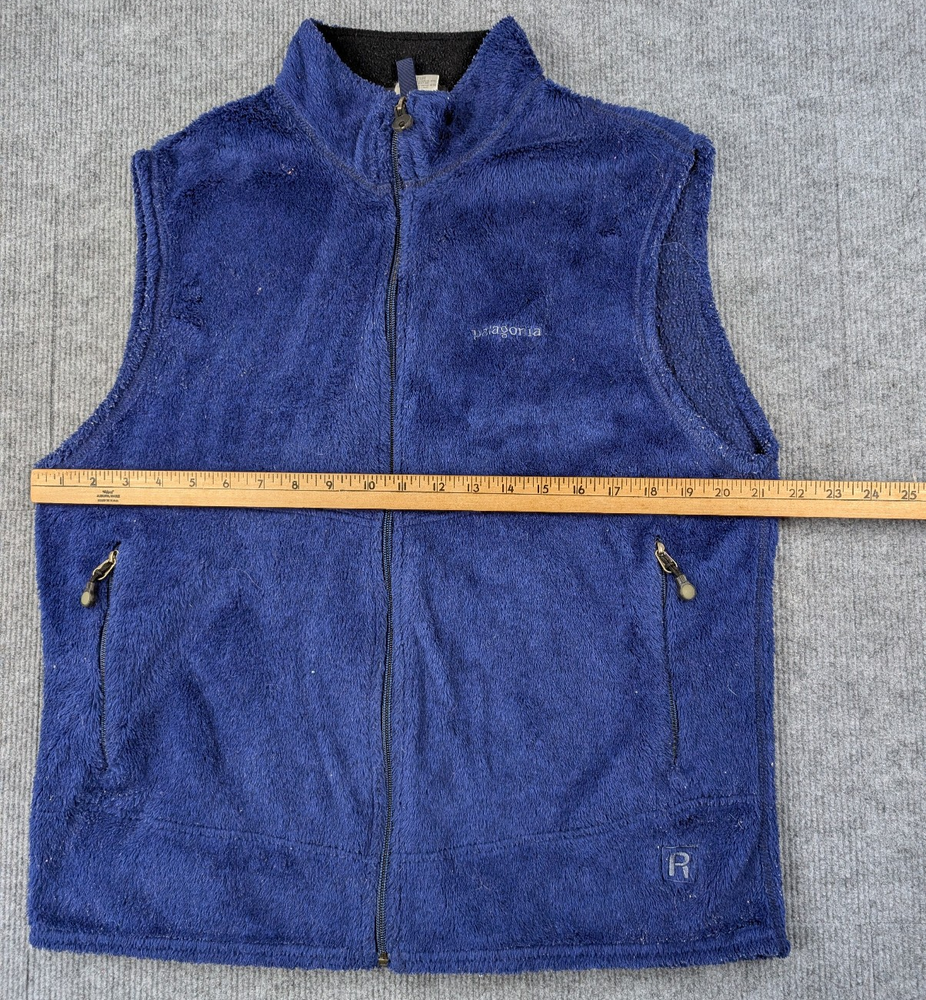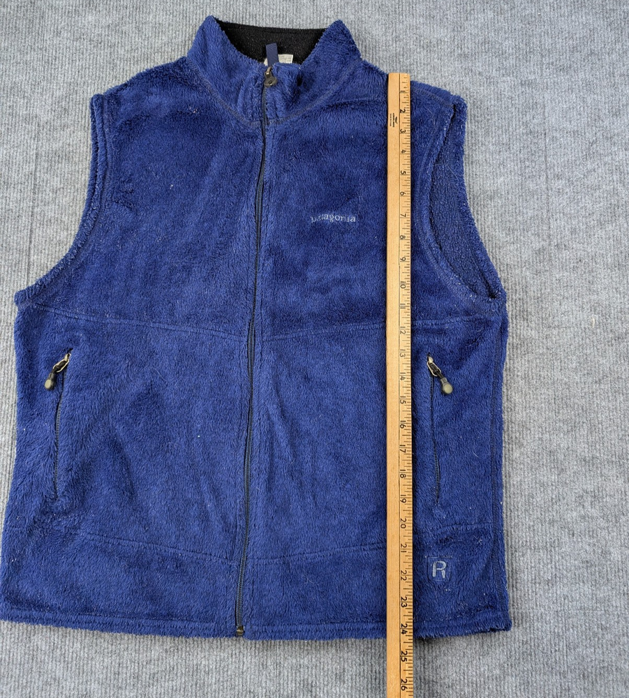 Brand: Patagonia Department: Womens Type: Vest Style: Fleece Vest Size: L Color: Blue Material: 100% Polyester Fabric Type: Fleece Closure: Full Zip Fit: Regular Features: Zippered Pockets, Lightweight, Warm, Layering Season: Fall, Winter, Spring Country/Region of Manufacture: Not specified Condition: Pre-owned