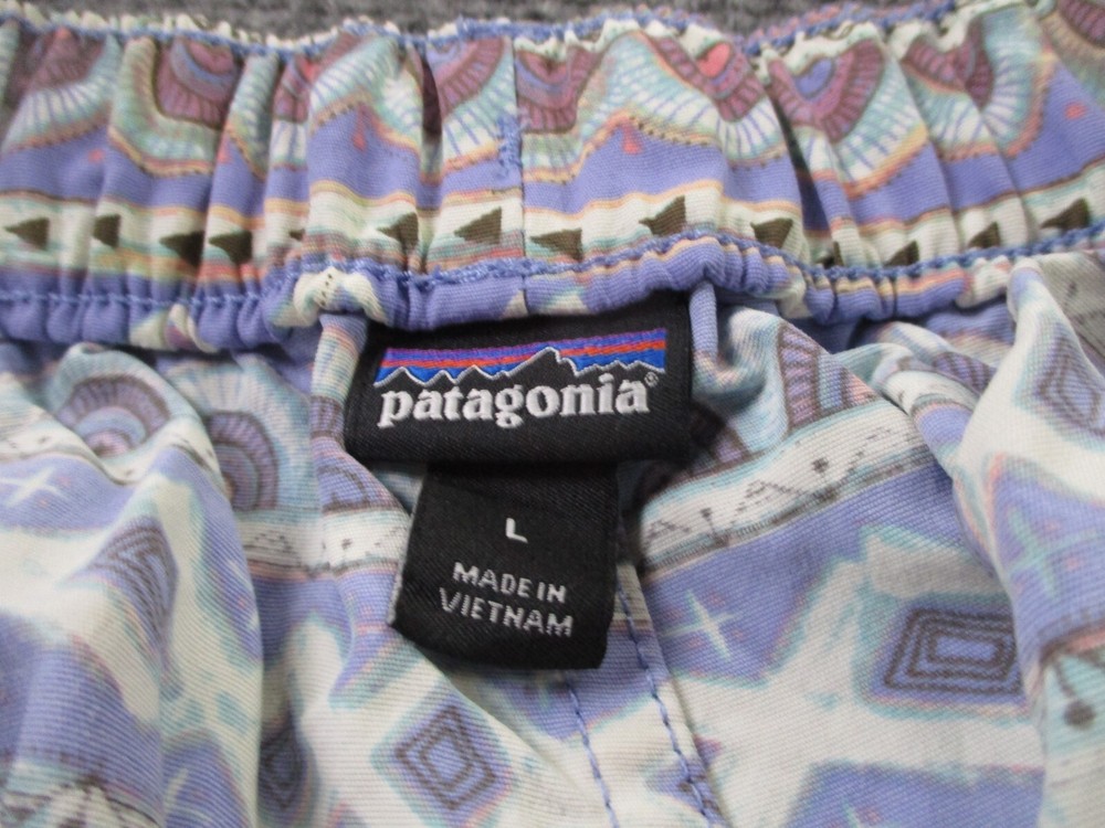 Features: Adjustable Waist, Comfort, Drawstring, Elastic Waist, Lightweight, Lined, Pockets, Quick Dry UPC: Does not apply Closure: Pull On Size Type: Regular Theme: Logo Color: Blue Fit: Regular Size: L Department: Women Pattern: Geometric Style: Athletic Fabric Type: Knit Garment Care: Machine Washable Product Line: Patagonia Country of Origin: Vietnam Seller Notes: “Very good used condition. Check below for full description & photos.” Performance/Activity: Hiking Waist Size: 28 in Handmade: No Inseam: 2.0 in. Brand: Patagonia gtin13: Does not apply Occasion: Casual Season: Fall, Spring, Summer Material: Nylon
