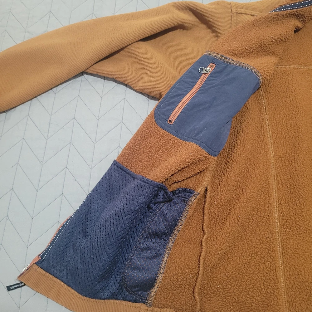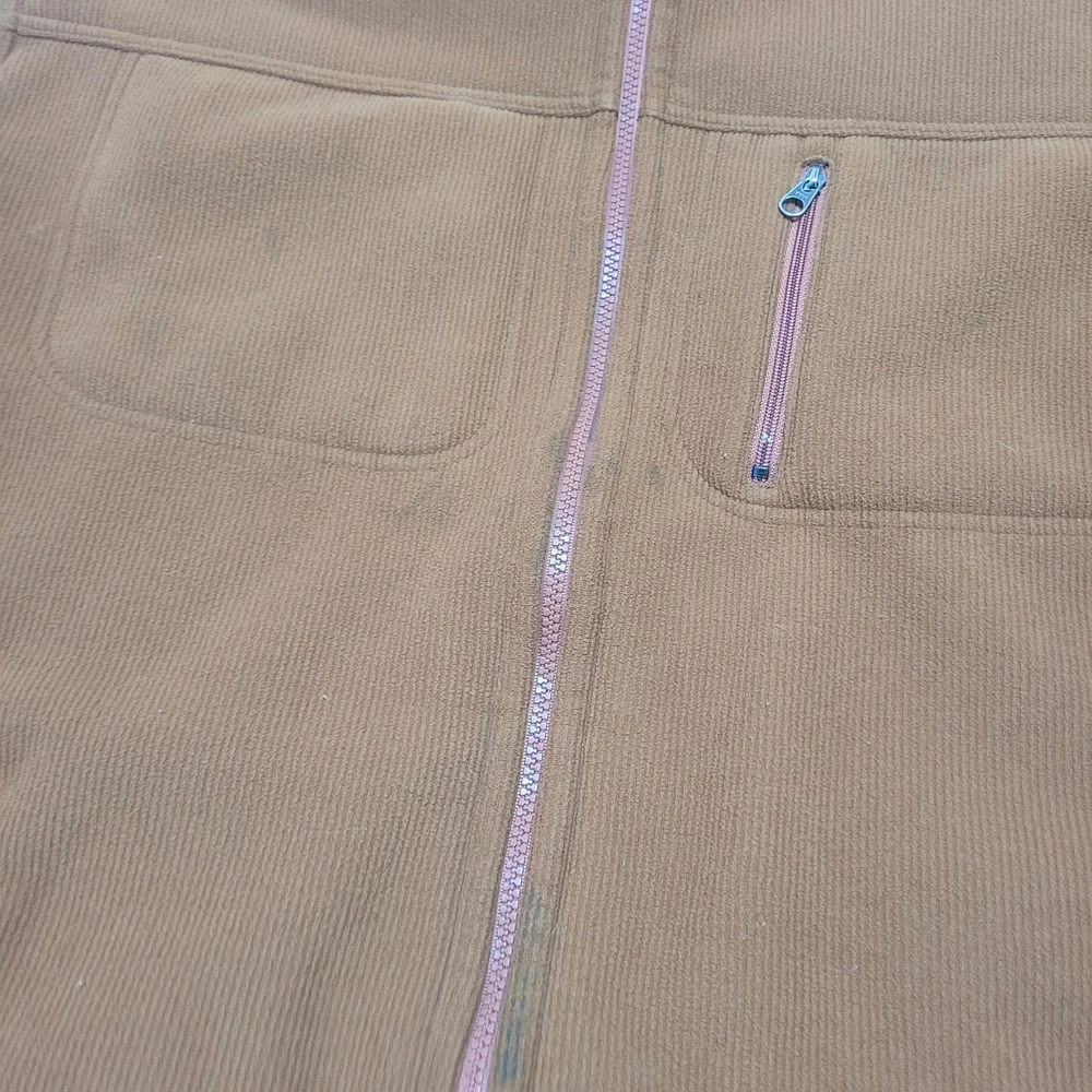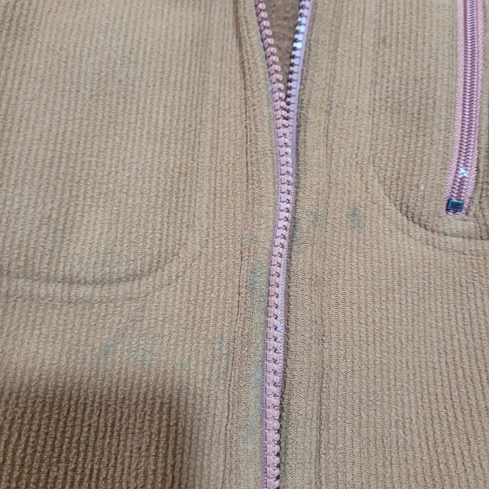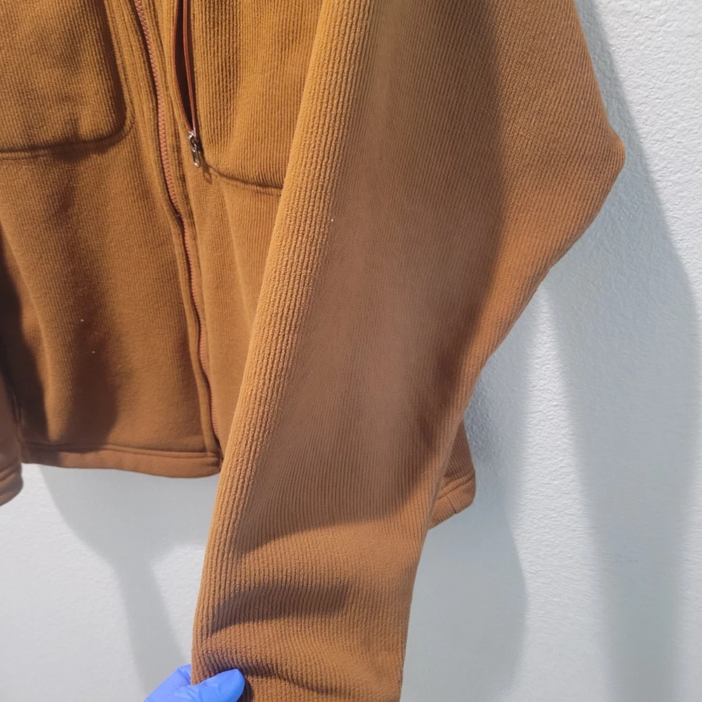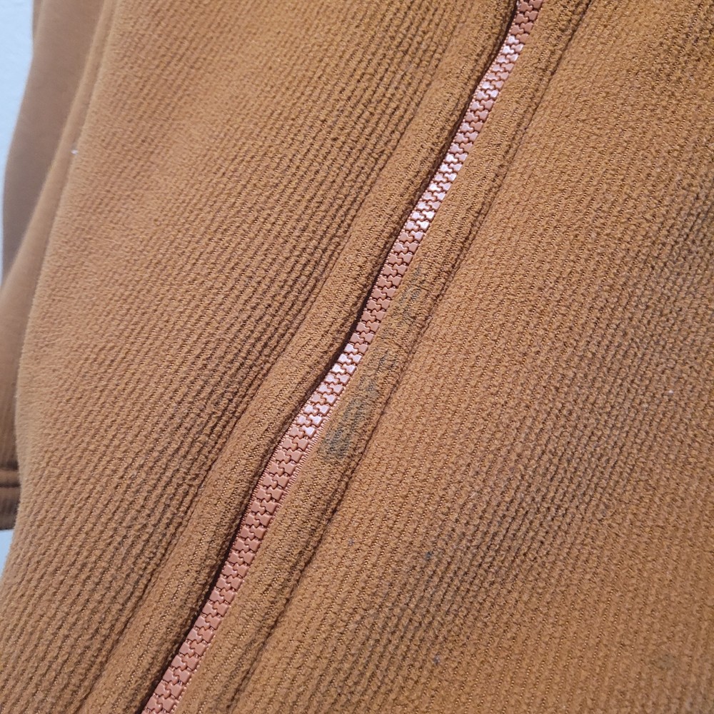 Jacket or sweater is in good condition overall, might have some loose threads, it also shows some black stains by the zipper area and the hand wrists, please review every picture for condition before you buy. Measurements Neck to Bottom 29" Armpit to Armpit 23 Sleeves 23"