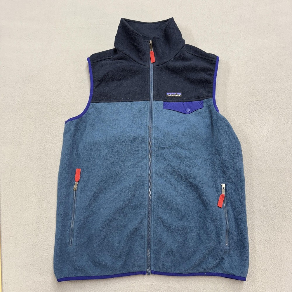 Color: Blue Style: Quilted Department: Men Model: Patagonia Synchilla Brand: Patagonia Outer Shell Material: Polyester Size: L Closure: Zip Size Type: Regular Features: Collared, Full Zip, Pockets, Zipped Pockets, Thermal Pattern: Solid Performance/Activity: Hiking, Walking Season: Fall, Winter Vintage: No Occasion: Casual Type: Vest Fabric Type: Fleece