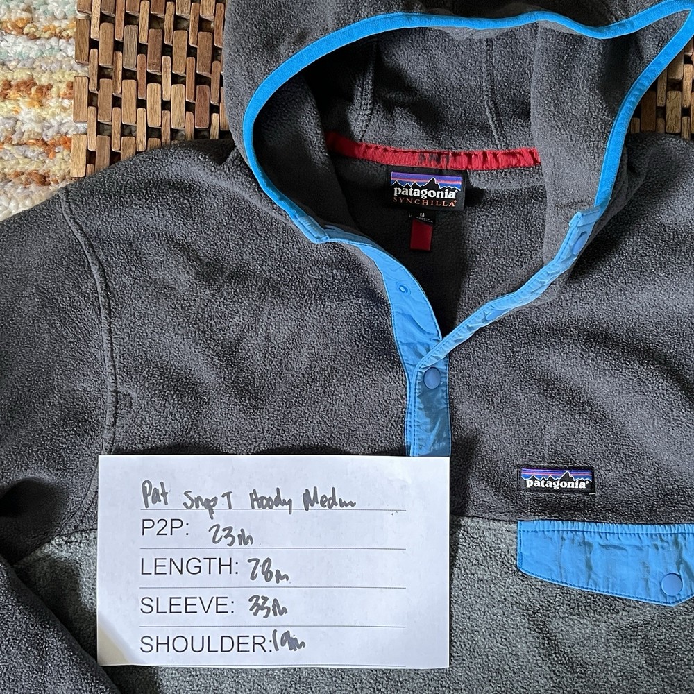 Insulation Material: Polyester Size: M gtin13: does not apply Theme: Outdoor, Ski, hike, hoodie Product Line: Patagonia Synchilla Size Type: Regular Country/Region of Manufacture: Nicaragua Lining Material: Polyester Fabric Type: Fleece Closure: Zip Color: Blue Features: Full Zip Performance/Activity: Skiing Outer Shell Material: Polyester Pattern: Solid Department: Men Type: Jacket UPC: does not apply Brand: Patagonia Accents: Logo, Zipper Style: Full Zip Model: Shelled Synchilla Snap-T Fleece Hoody