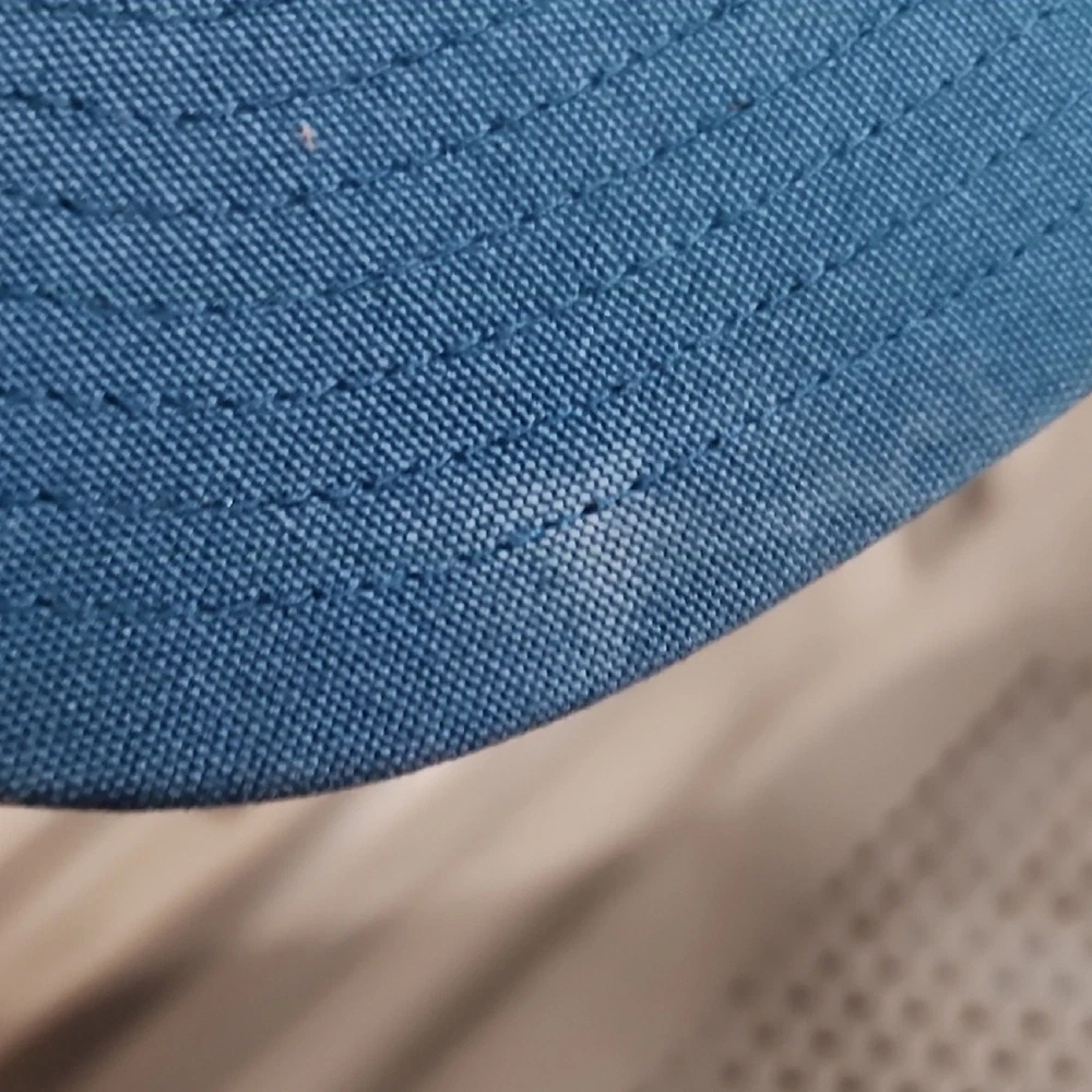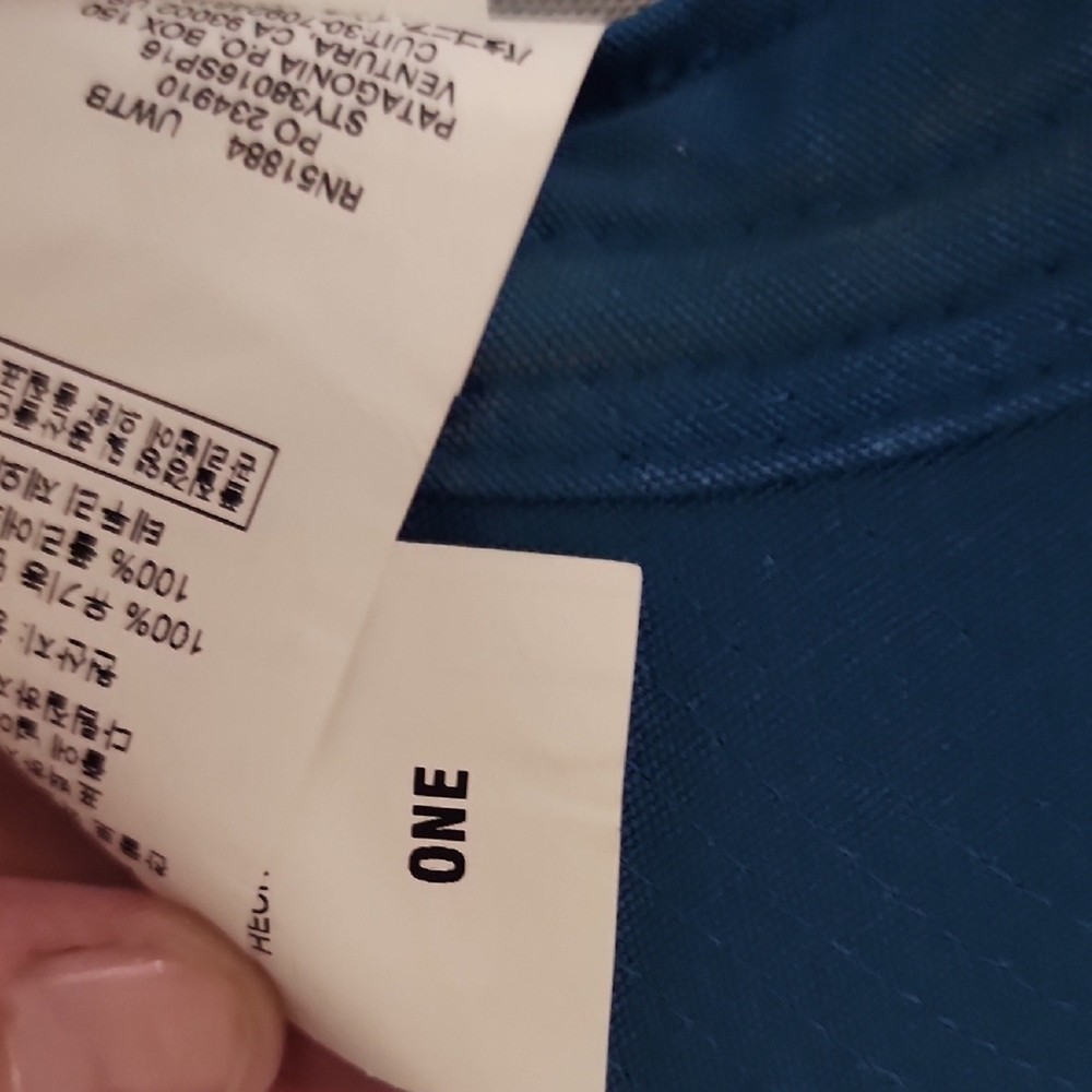 Teal cap with mesh back. Features iconic Patagonia logo patch. some discoloration. please see pictures