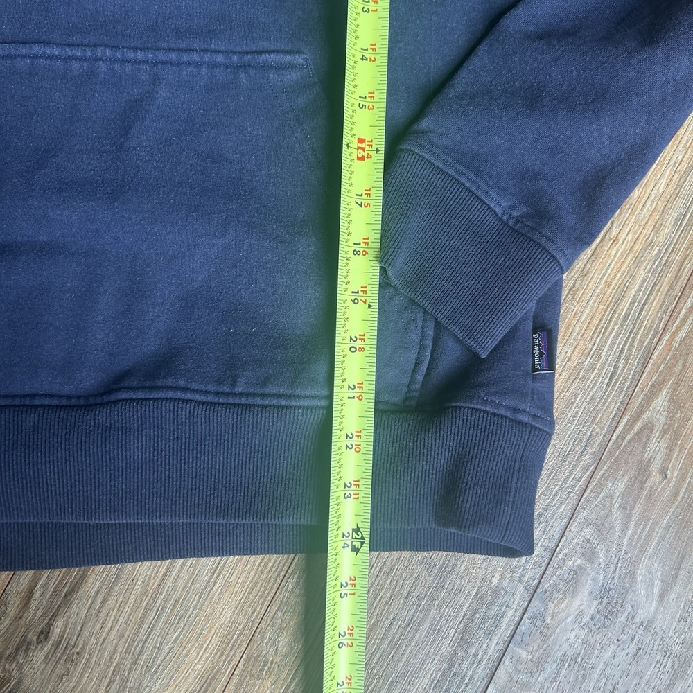 The Patagonia Uprisal Hoodie in Men's Medium Blue is a stylish and comfortable activewear piece perfect for casual wear or outdoor activities like hiking. Made from a cozy cotton blend material, this hoodie features a drawstring closure and a hood for added warmth and style. The solid blue color and regular fit make it a versatile addition to any man's wardrobe, offering a pullover design and long sleeves for convenience and comfort. With the reputable brand of Patagonia, this hoodie combines quality craftsmanship with a classic outdoor theme, making it a must-have for any man looking for a reliable and fashionable sweatshirt. There is regular use fading on the front/back other wise excellent used condition Tags: hiking, outdoor, fall, winter, spring, Patagonia, mountains, navy, hoodie
