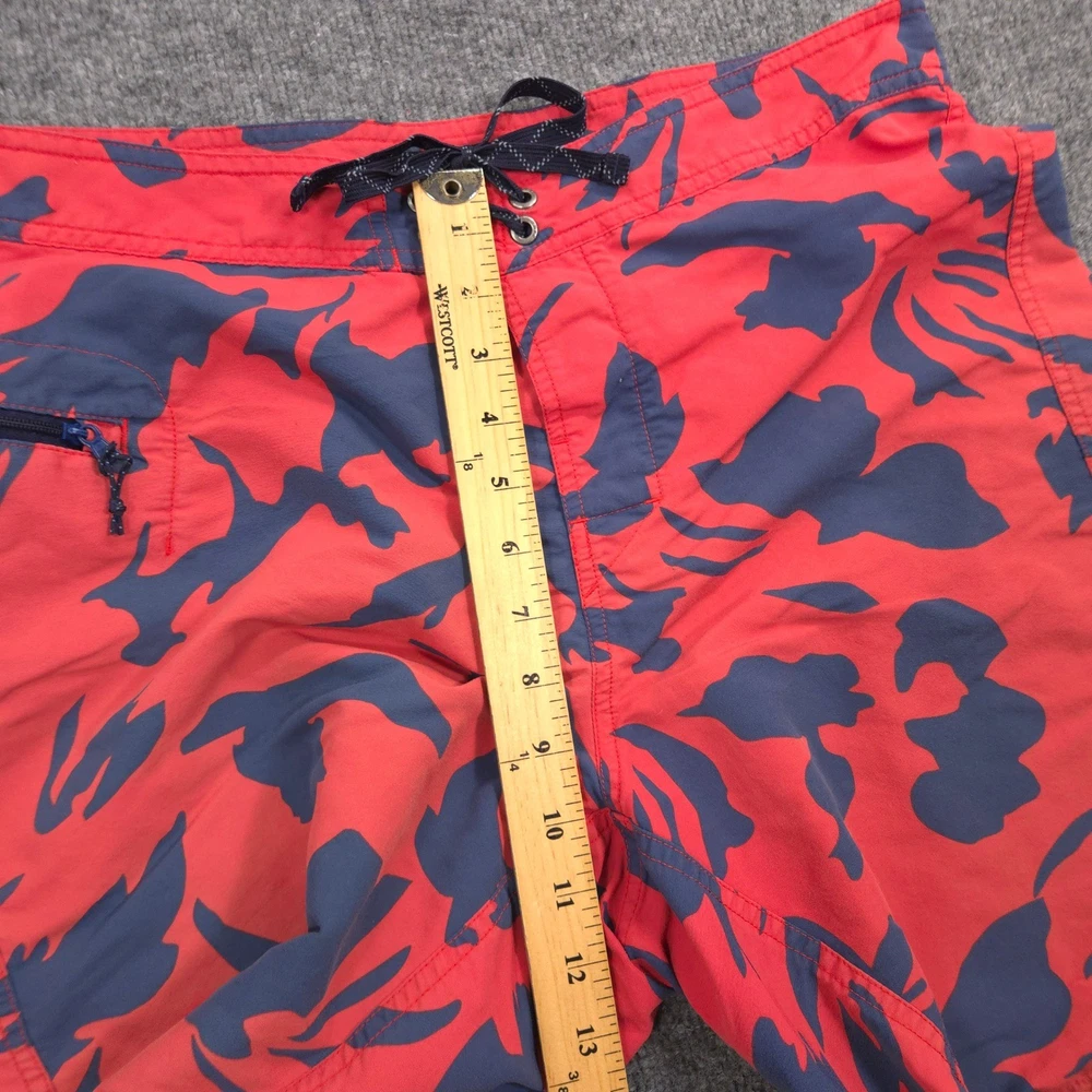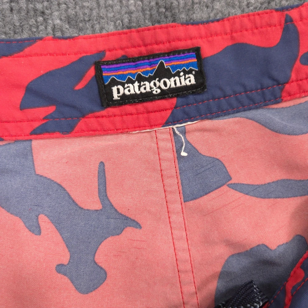 Patagonia Wavefarer Board Shorts Mens M Red Blue Geometric Abstract Unlined Swim Great Condition: A few small marks, some light wear on back, highlighted in last 3 photos. Shorts are missing inner label as pictured. Please see photos for measurements. Sold as pictured. Thanks for looking! -Measurements are approximate, please measure and check your favorite items at home to estimate fit -100% authenticity guaranteed -Items typically ship next business day