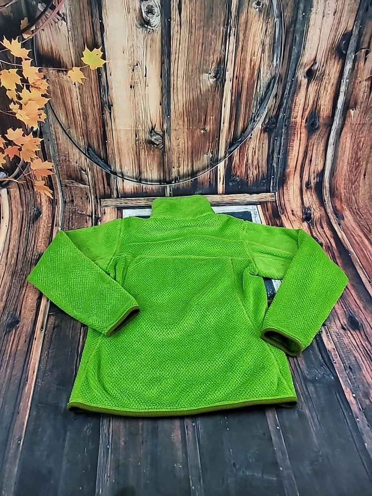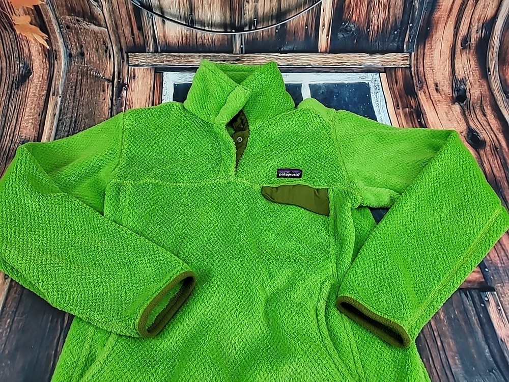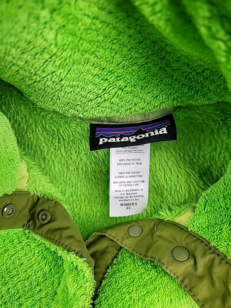 This Women's Patagonia Synchilla Snap-T Re-Tool jacket is a versatile addition to any wardrobe. The green fleece material is both warm and stylish, making it perfect for outdoor activities or casual wear. The snap closure and collared design add a touch of preppiness, while the button and logo accents give it a classic look. With its lightweight and organic features, this mid-length jacket is perfect for fall, winter, and spring seasons. The jacket also has pockets for added convenience, making it ideal for travel or workwear. Machine washable and made in Nicaragua, this jacket is a must-have for any woman's closet.