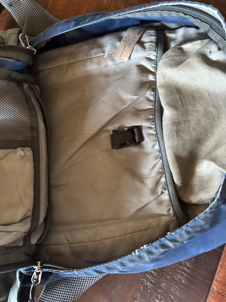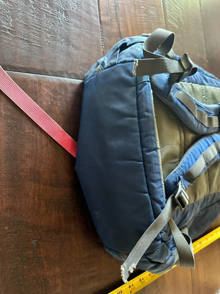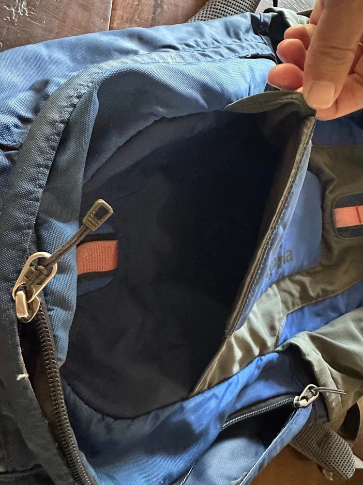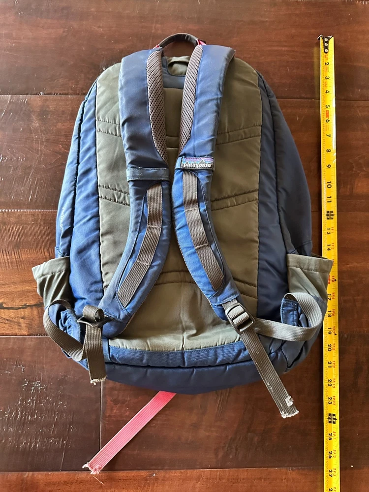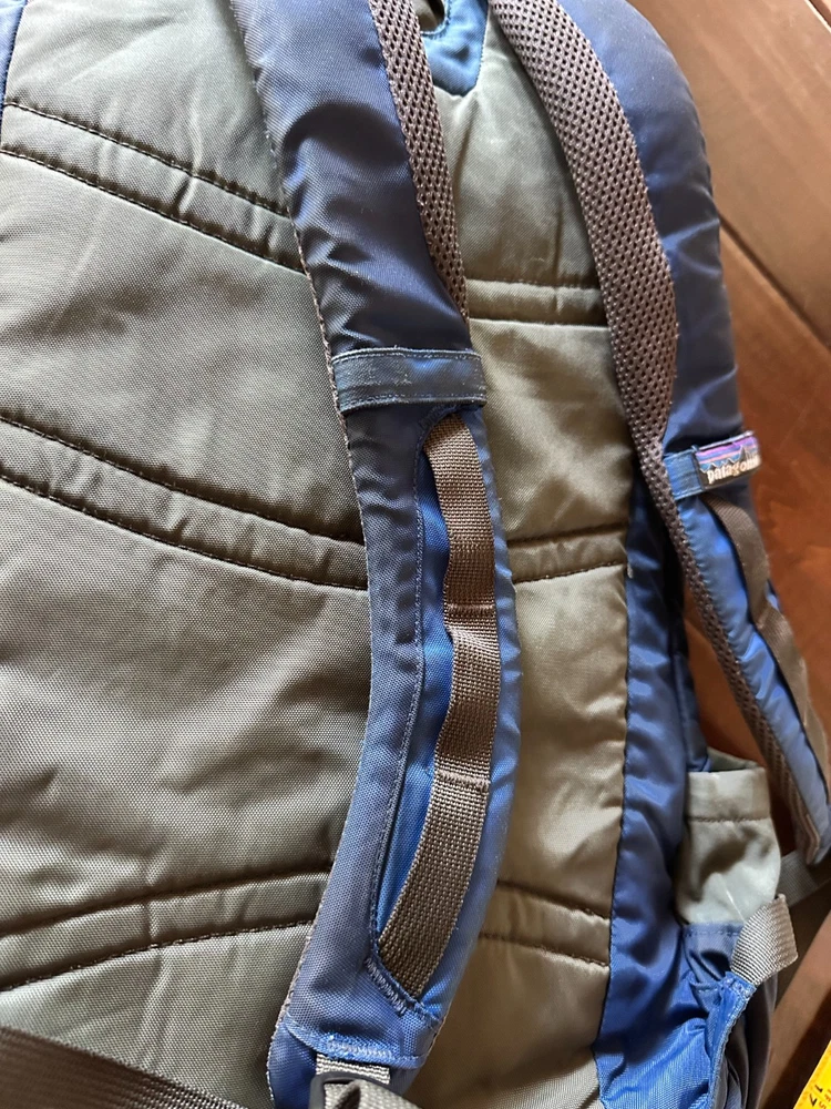 Well-Loved Patagonia Yerba 22L Backpack - Unisex Daypack - Blue / Gray - Great for Hiking & Travel This is a well-loved Patagonia Yerba 22L backpack, perfect for daily use, hiking, or travel. While it has some mileage on it, this backpack is a testament to Patagonia's legendary durability and still has plenty of life left for its next adventure. Please review all photos carefully to see the exact condition of the backpack. We've tried to capture all aspects of its wear, both inside and out. Condition Details: Exterior: The main blue and gray fabric has a few minor scuffs and some small, dark marks, consistent with regular use. There is general wear and slight fading on all fabric panels. Pockets: The elasticized side and front pockets have lost some of their stretch but are still functional for holding items. Straps & Webbing: The red/pink webbing on the front of the pack is frayed at the ends. One of the shoulder straps also has fraying at the very end. The stitching along the main zipper has a few loose threads. Interior: The inside of the backpack is clean and free of any major stains or damage. The main compartment shows some minor dirt/dust from use, but the organizational pockets are clean and intact. All internal dividers and features, including the key clip, appear to be fully functional. Functionality: All zippers and buckles are in good working order. The padded shoulder straps and back panel are intact and comfortable. Great backpack!