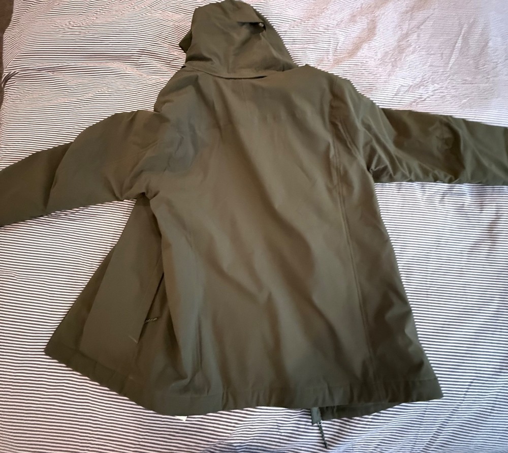 The Patagonia insulated jacket with a removable hood and H2NO technology is a high-quality men's winter coat in size small. Made with a durable nylon outer shell and insulated with polyester, this jacket is perfect for staying warm and dry during cold weather. The green color and classic parka style make it a versatile and stylish addition to any outdoor wardrobe. With its removable hood and insulated design, this jacket is a practical and functional choice for winter activities.
