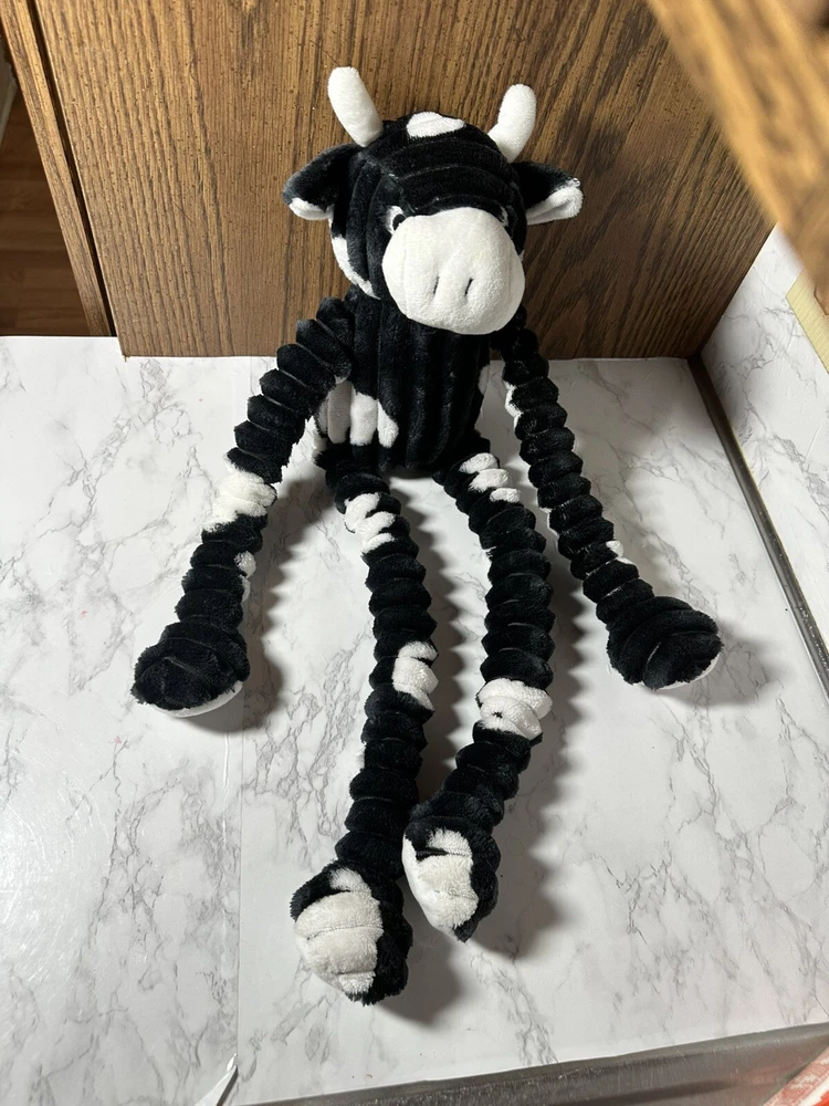 Patchwork Long Leg Cow Dog Squeaky Dog Toy 24”