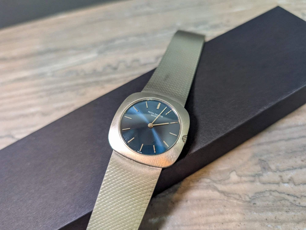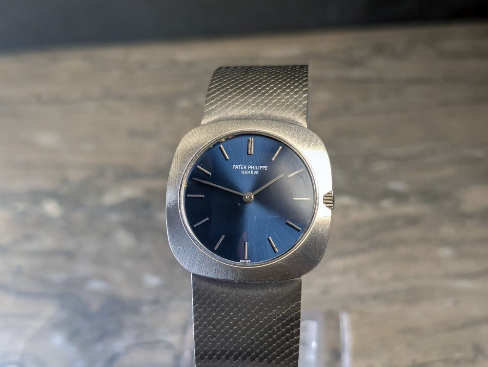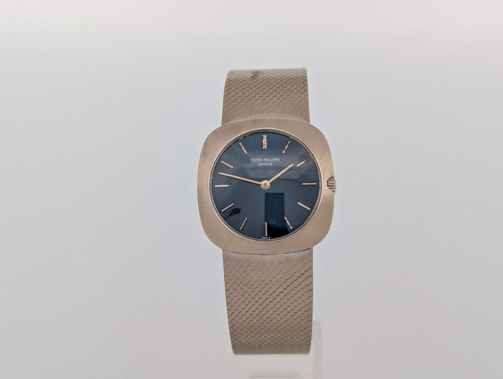 Patek Philippe White Gold 3543/2 Blue Sunburst Dial Watch Vintage Patek Philippe White Gold 3543/2 – Blue Sunburst Dial Timeless elegance meets vintage sophistication with this Patek Philippe 3543/2, a stunning dress watch from the 1970s crafted in 18k white gold. This rare reference embodies the brand’s legendary craftsmanship, featuring a striking blue sunburst dial that radiates with understated brilliance. The ultra-thin, manually wound movement is housed in a sleek, minimalist case, showcasing Patek Philippe’s dedication to precision and refined aesthetics. Complemented by a finely textured integrated white gold bracelet, this watch wears effortlessly, balancing classic design with a modern sensibility. Whether you're a seasoned collector or seeking a distinguished addition to your collection, this Patek Philippe 3543/2 is an exceptional piece of horological history. Condition Report: This Patek Philippe 3543/2 is in very good overall condition. The case has light surface marks at 5 and 10 o’clock, along with superficial wear on the case back. The bracelet remains in excellent shape, with only light handling marks. The blue sunburst dial has developed a charming patina, most noticeable at 12 o’clock, adding character and uniqueness to the watch. On the wrist, it presents beautifully, maintaining its classic and sophisticated appeal. Patek Philippe White Gold 3543/2 Blue Sunburst Dial Watch Vintage Patek Philippe White Gold 3543/2 – Blue Sunburst Dial Timeless elegance meets vintage sophistication with this Patek Philippe 3543/2 , a stunning dress watch from the 1970s crafted in 18k white gold . This rare reference embodies the brand’s legendary craftsmanship, featuring a striking blue sunburst dial that radiates with understated brilliance. The ultra-thin, manually wound movement is houséd in a sleek, minimalist case, showcasing Patek Philippe’s dedication to precision and refined aesthetics. Complemented by a finely textured integrated white gold bracelet, this watch wears effortlessly, balancing classic design with a modern sensibility. Whether you're a seasoned collector or seeking a distinguished addition to your collection, this Patek Philippe 3543/2 is an exceptional piece of horological history. Condition Report : This Patek Philippe 3543/2 is in very good overall condition. The case has light surface marks at 5 and 10 o’clock, along with superficial wear on the case back. The bracelet remains in excellent shape, with only light handling marks. The blue sunburst dial has developed a charming patina, most noticeable at 12 o’clock, adding character and uniqueness to the watch. On the wrist, it presents beautifully, maintaining its classic and sophisticated appeal. × × × × × × × × × × × Buy now and save! Shipping info Click the Shipping & Payments tab above the listing description for more info Click the Shipping & Payments tab above the listing description for more info! Additional delivery notes PICK UP OPTION Sorry, our items are NOT available for pick-up. PAYMENT Immediate payment is required upon selecting "Buy It Now" or upon checking out through the cart. We accept payment via U.S. PayPal accounts and all Major Credit Cards, Debit Cards & Google Pay. We are legally required to collect sales tax in those states and localities where we maintain a physical presence (nexus). The applicable amount of sales tax charged to an order will be calculated based on the shipment destination's state and local sales tax laws. Thank you for shopping with us on eBay! Additional Information No additional information at this time Ask seller a question You might also like Audemars Piguet Edward Piguet 25987BC Box & Papers Watch Rolex Sky-Dweller Unworn 42mm Box & Papers Rose gold Chocolate Dial Oyster-Flex Vacheron Constantin 1954 Cioccolatone Toledo Ref 4822 Rare Watch Box and Paper Rolex Datejust W/ Stickers Box Papers Blue Dial Jubilee 36mm Watch 126200 Contact To contact our Customer Service Team, simply click the button here and our Customer Service team will be happy to assist. Ask seller a question © Watch Them Tick Shipping & Payments Click the Shipping & Payments tab above the listing description for more info Payment Accepted Payment Methods Immediate payment is required upon selecting "Buy It Now" or upon checking out through the cart. We accept payment via U.S. PayPal accounts and all Major Credit Cards, Debit Cards & Google Pay. We are legally required to collect sales tax in those states and localities where we maintain a physical presence (nexus). The applicable amount of sales tax charged to an order will be calculated based on the shipment destination's state and local sales tax laws. Thank you for shopping with us on eBay! Returns Returns are accepted Items must be returned within 14 days of the auction ending Buyer will pay for return shipping. eBay integration by