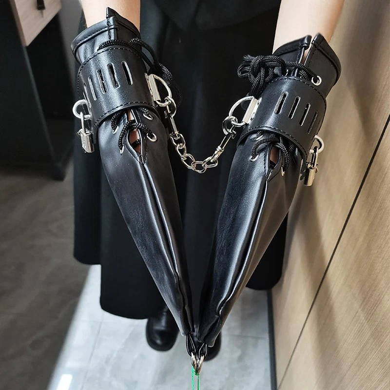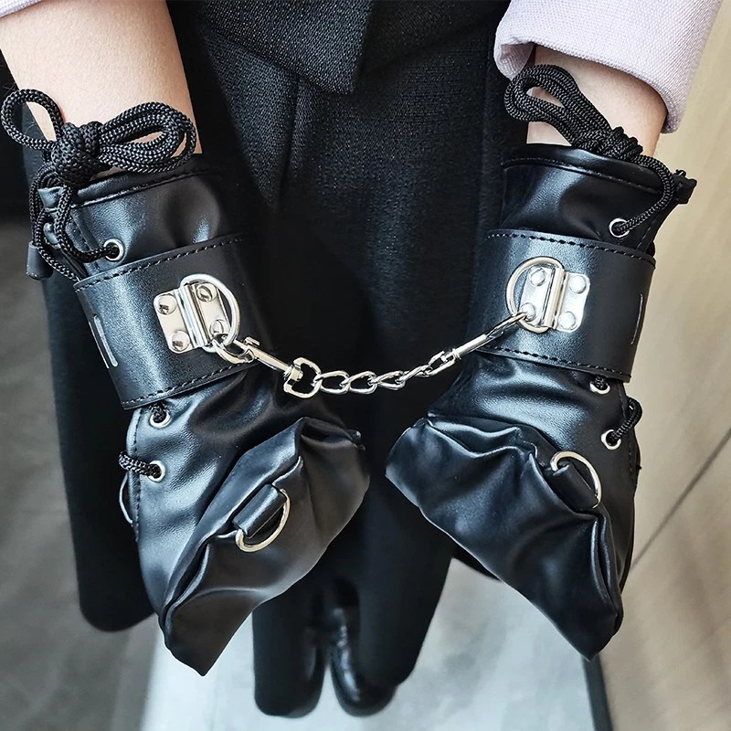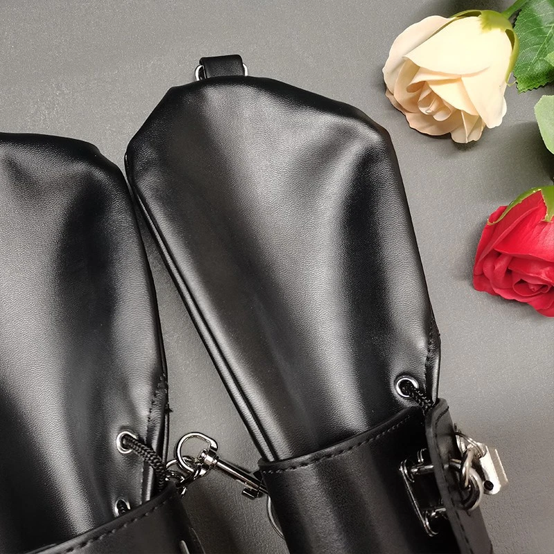 Feature: Condition:100% Brand New One Size for all Handcuff size: 24.5cm (L)* 5.5cm(W) Mitten Size: 27cm (L)* 13.5cm(W) Color: Black Material: Faux Leather Net Weight: 225g Package Included: one pair of cuffs as the picture with locks Description: This hand restraint features a pair of full hand glove and two wrist cuffs. The mittens are very soft and fully lined, with side lacing for a better fit. The wrist cuffs have one padlock with 2 keys for each lockable strap. Each mitten and wrist cuffs has D rings for rope or chains attachments. Free size, fits all hand sizes and max wrist size about 22cm.
