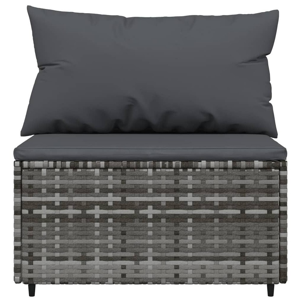 Patio Middle Sofa Grey PE rattan, powder-coated steel, fabric